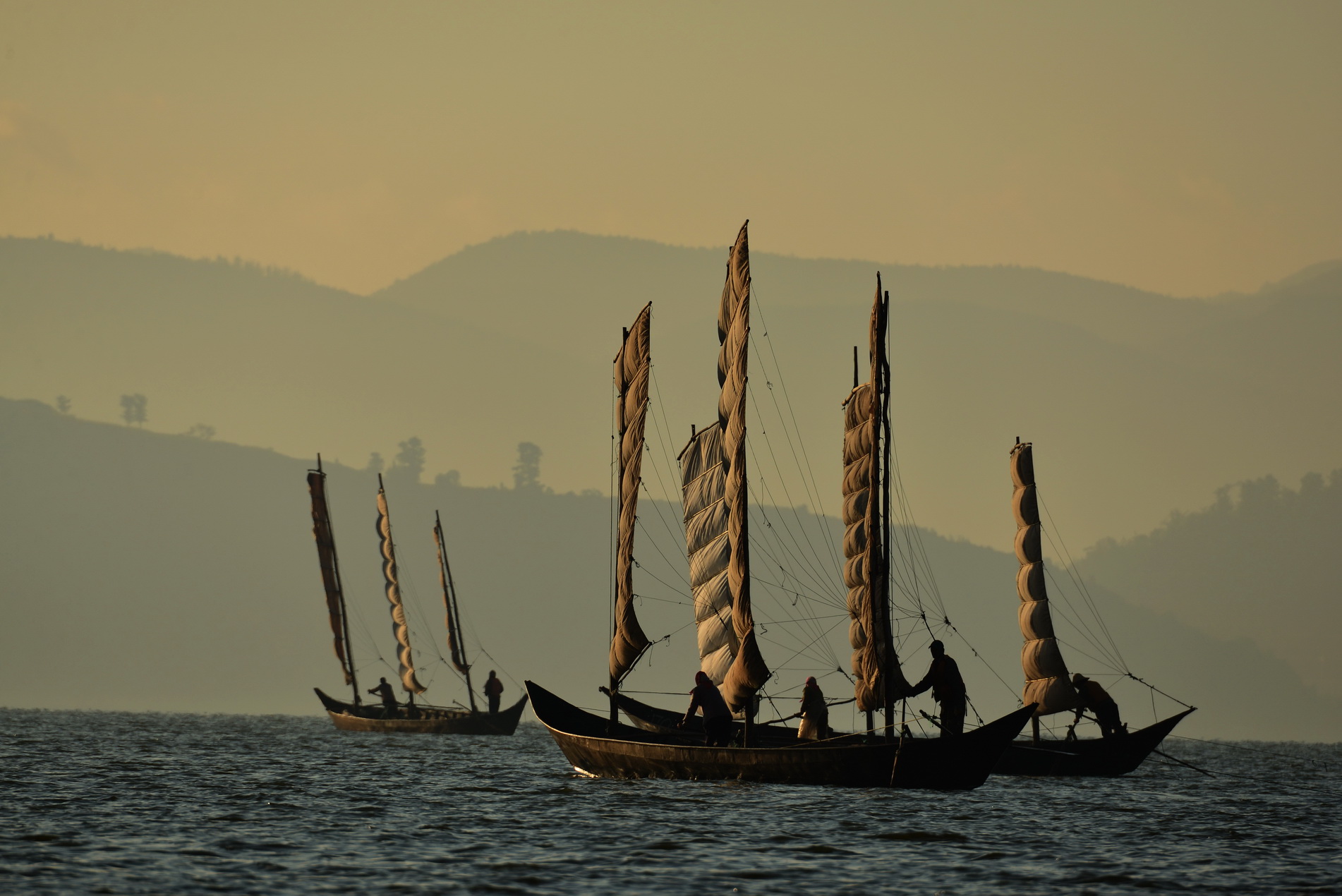 段迪曦《迎着朝霞出海的晋宁渔民》