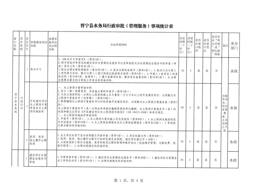 晋宁县水务局行政审批(管理服务)事项统计表
