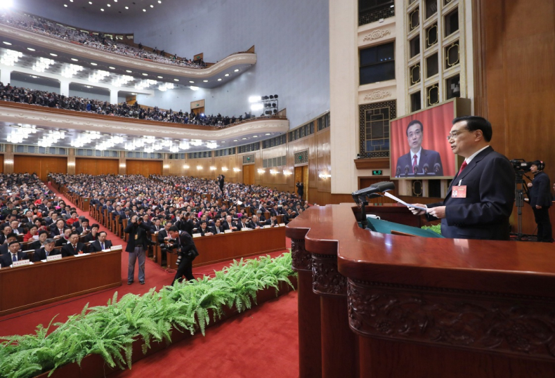 3月5日,李克强总理在十二届全国人大五次会议上作政府工作报告。图/中国政府网