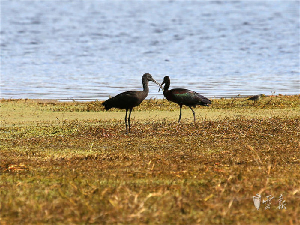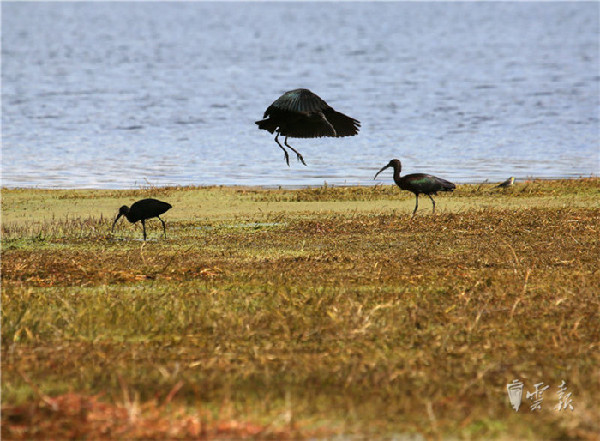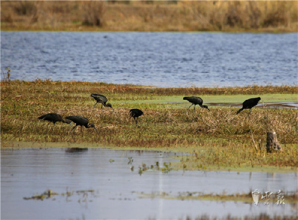 彩鹮近年在东川、红河州长桥海、玉溪和滇池等地有少量发现,此次在晋宁湿地发现还是首次,据统计此次共发现有10只彩鹮在此觅食。