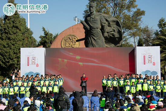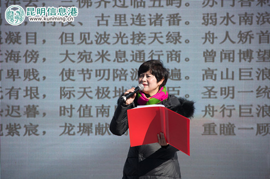 “书香春城•诵读经典公益行”启动于今年10月,从昆明大观楼的五百里滇池出发,走过了讲武堂的百年风云,走进了昆明书城和多所昆明市的中小学和大学的校园,今天来到郑和的故乡晋宁,用诵读经典的方式,共同体会伟大航海家郑和从大山到大海的波澜壮阔与万丈豪情。