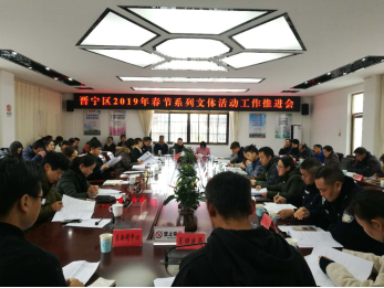 会议还强调,2019年春节系列文体活动是晋宁区一项新年开局的重要工作,时间紧任务重,请各单位一定要按照本次会议的安排部署,务实苦干,努力开创2019年全区工作的新局面,为晋宁建设国际康养旅游新区、古滇郑和文化名城、高原湖滨宜居新城贡献力量。