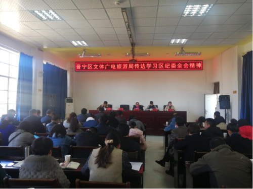 1月28日上午,晋宁区文体广电旅游局召开局全系统工作会议,迅速传达学习区纪委一届二次全会精神,部署局系统贯彻落实工作,局党政班子成员,全系统干部职工参加了会议。