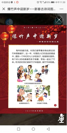 为欢庆2019年春节,切实开展好“我们的节日·春节”主题活动,春节期间,昆明市晋宁区图书馆在一楼巨桥文院举办了“新春古诗词图展”主题展。