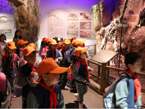同学们在讲解员的带领下走进展厅,近距离的聆听“历史”,触摸“历史”,感受“历史”。首先同学们参观了远古天地展厅,主要介绍晋宁大地地质环境变化的过程和曾经生存过恐龙等古生物化石,让同学们了解到晋宁是云南的第二恐龙之乡。