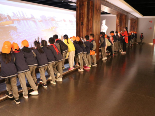 在郑和文化展厅,郑和船队模型吸引了同学们的注意力,通过讲解员的解说和观看影片,让同学们了解到了郑和七次下西洋的伟大壮举。