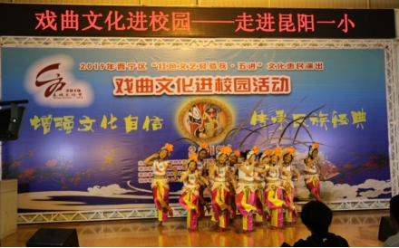 阳春四月,柳絮飘飞。在这春意盎然的季节里,由中共昆明市晋宁区委、昆明市晋宁区人民政府主办、晋宁区文化和旅游局、晋宁区教育体育局承办,并邀请省市名家现场表演展示的一场精彩绝伦的戏曲艺术表演“戏曲文化进校园”活动在昆阳第一小学多功能厅拉开序幕,让师生切身实际感受到了传统戏曲艺术的魅力。