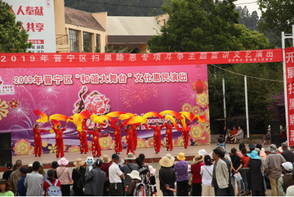 4月29日,晋宁区文化馆在郑和文化广场举办2019年晋宁区扫黑除恶专项斗争主题宣讲文艺演出。