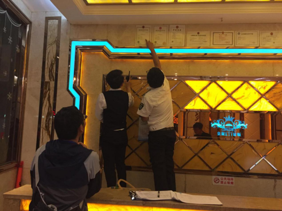 检查过程中,执法人员对歌舞娱乐场所曲库是否符合标准、是否接纳未成年人进入消费等违法违规行为进行了检查。向各娱乐场所业主宣传开展扫黑除恶专项斗争的重要性和必要性,对场所内的相关人员进行了解询查,对黑恶势力线索进行摸排,要求娱乐场所经营单位严格落实企业安全生产主体责任,加强安全隐患排查;要切实营造良好的经营氛围,做好营业经营许可证的自检自查,已经到期的相关证件要进行更换;进一步引导消费者文明娱乐、文明消费,杜绝涉“黄、赌、毒”现象的发生。