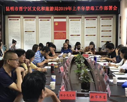 为进一步落实好晋宁区文化和旅游局禁毒相关工作。2019年6月17日上午10:00,晋宁区文化和旅游局组织全系统干部职工,在机关会议室召开了“2019禁毒工作推进会”。