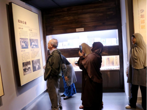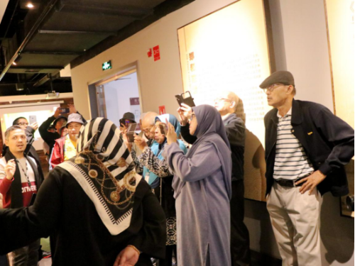 在三楼郑和文化展厅里,一块块展板上讲述着郑和的故事。大家仔细地观看,纷纷拿出手机拍照留念。