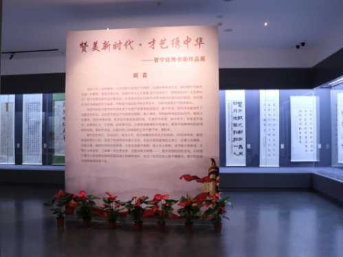 为庆祝中华人民共和国成立70周年,以书画艺术形式歌颂新中国取得的辉煌成就,弘扬中华优秀传统文化。中共昆明市晋宁区委宣传部、昆明市晋宁区总工会、昆明市晋宁区文化和旅游局联合举办的“庆祝新中国成立70周年赞美新时代•才艺绣中华晋宁优秀书画作品展”于2019年9月27日上午10点在晋宁博物馆开展。