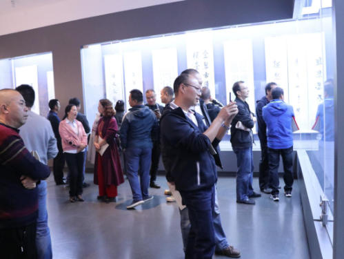 开展当天,到晋宁进行主题讲座的山东二七一教育集团总校长,全国优秀教师,全国十佳中学校长赵丰平校长,在李雁遐副区长的陪同下到晋宁博物馆参观,在一楼书画展厅赵丰平校长对晋宁博物馆搭建文化交流平台,推动晋宁文化事业发展的工作给予了充分的肯定。