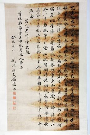 赵垿(1833~1925)字兰亭,云南洱源人,拔贡。清咸丰、同治年间入大理杜文秀帅府做幕僚,杜文秀起义失败后隐居故里。书法妍温润雅、清劲可喜。