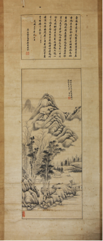 朱昂,初名源,字子眉,昆明人。僧担当甥。初避难,担当携至鸡足山为僧。释名把茅,后返初服,始易今名。工诗,善画山水,法担当而能变通之。该作品柔中有骨,运笔转折灵变,用墨干湿浓淡兼之,层次分明。画风蕴蓄丰厚,清隽雅逸。