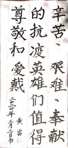 在推出“众志成城战疫情 笔墨丹青谱新篇”晋宁区抗击新冠肺炎疫情的书画作品征集展览活动以来,活动得到了社会各界书画爱好者的广泛参与,现已收到近百幅书画作品,虽然部分书画作品的水平还有待提高,但充分表达了作者对奋战在疫情防控一线工作者的敬意,他们向在这场“战疫”中的最美逆行者致敬!