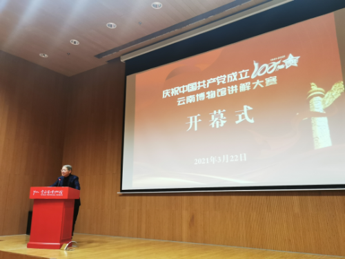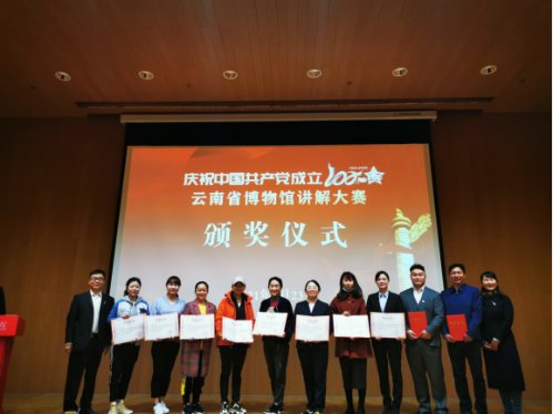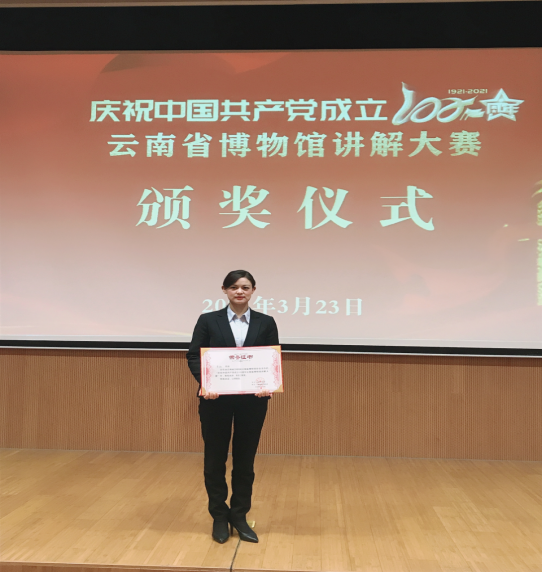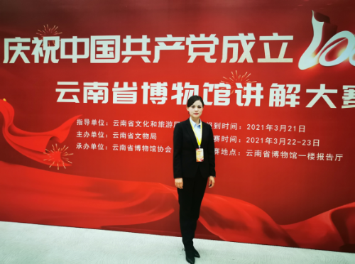 为庆祝中国共产党成立100周年,充分展现我省文博一线讲解员的专业素养和精神风貌,2021年3月22日至23日,在云南省文化和旅游厅的博物馆指导下,由云南省文物局主办,云南省博物馆承办的“庆祝中国共产党成立100周年云南省博物馆讲解大赛”于3月22日在云南省博物馆报告厅成功举行。经过激烈角逐,由昆明市文物局选派晋宁区博物馆的讲解员李松喜获全省讲解员大赛三等奖。