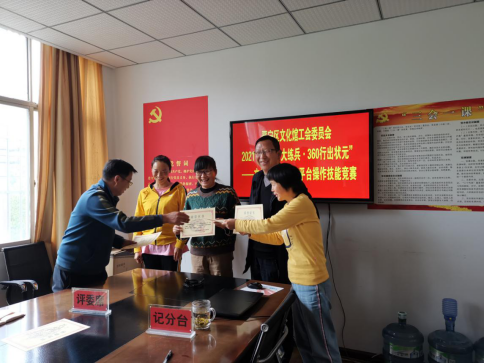 为提升职工职业技能素质,加强创新型职工队伍建设,为职工“学技术、练技能、强素质”搭建平台,结合新时期公共文化服务的需求,展现新时期文化馆良好的精神风貌,晋宁区文化馆以文化数字服务平台操作技能作为竞赛内容开展竞赛。竞赛中,每位职工的按照操作步骤认真操作,精心调整版面,技能娴熟,充分展现了职工们的优良的综合素质和良好的精神风貌,经过两个多小时激烈竞赛,队员们用自己的努力取得了满意的成绩,晋宁区文化馆工会为获奖职工颁发的奖状。