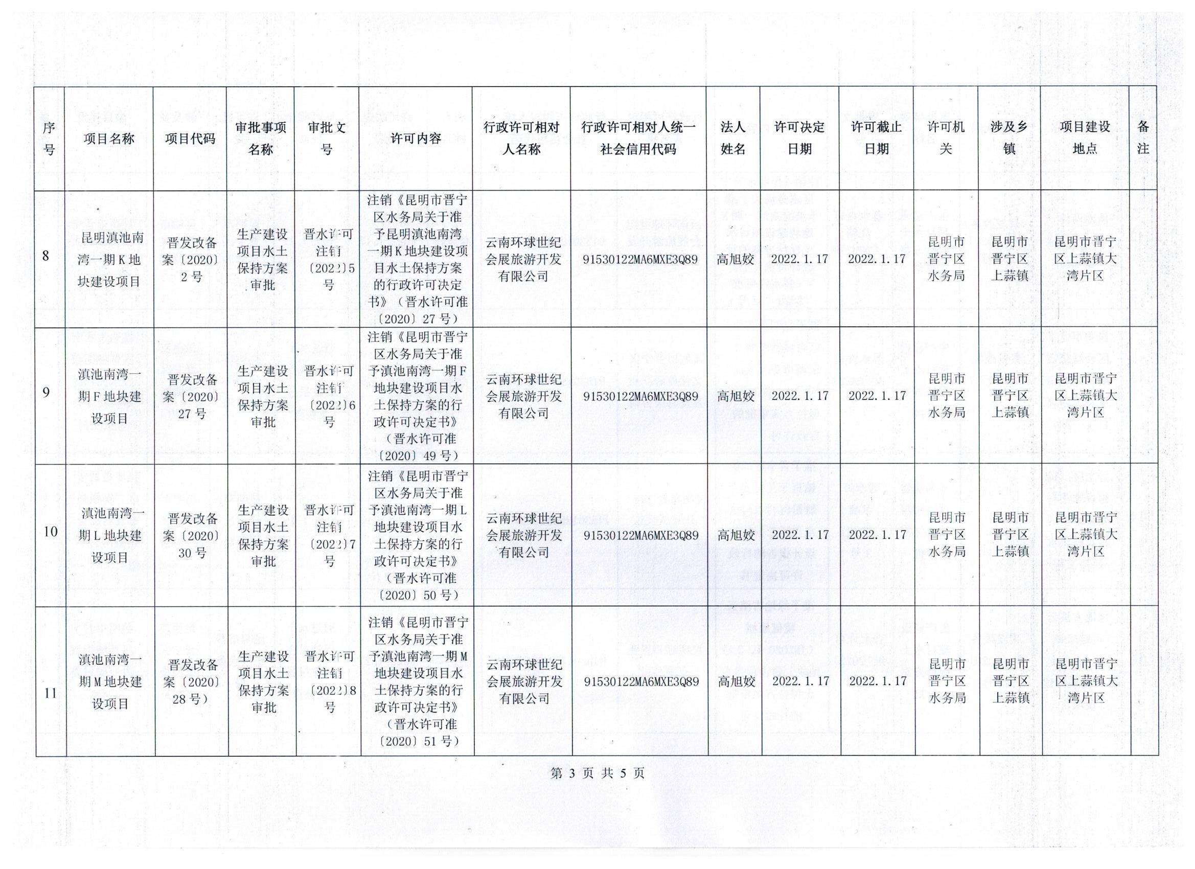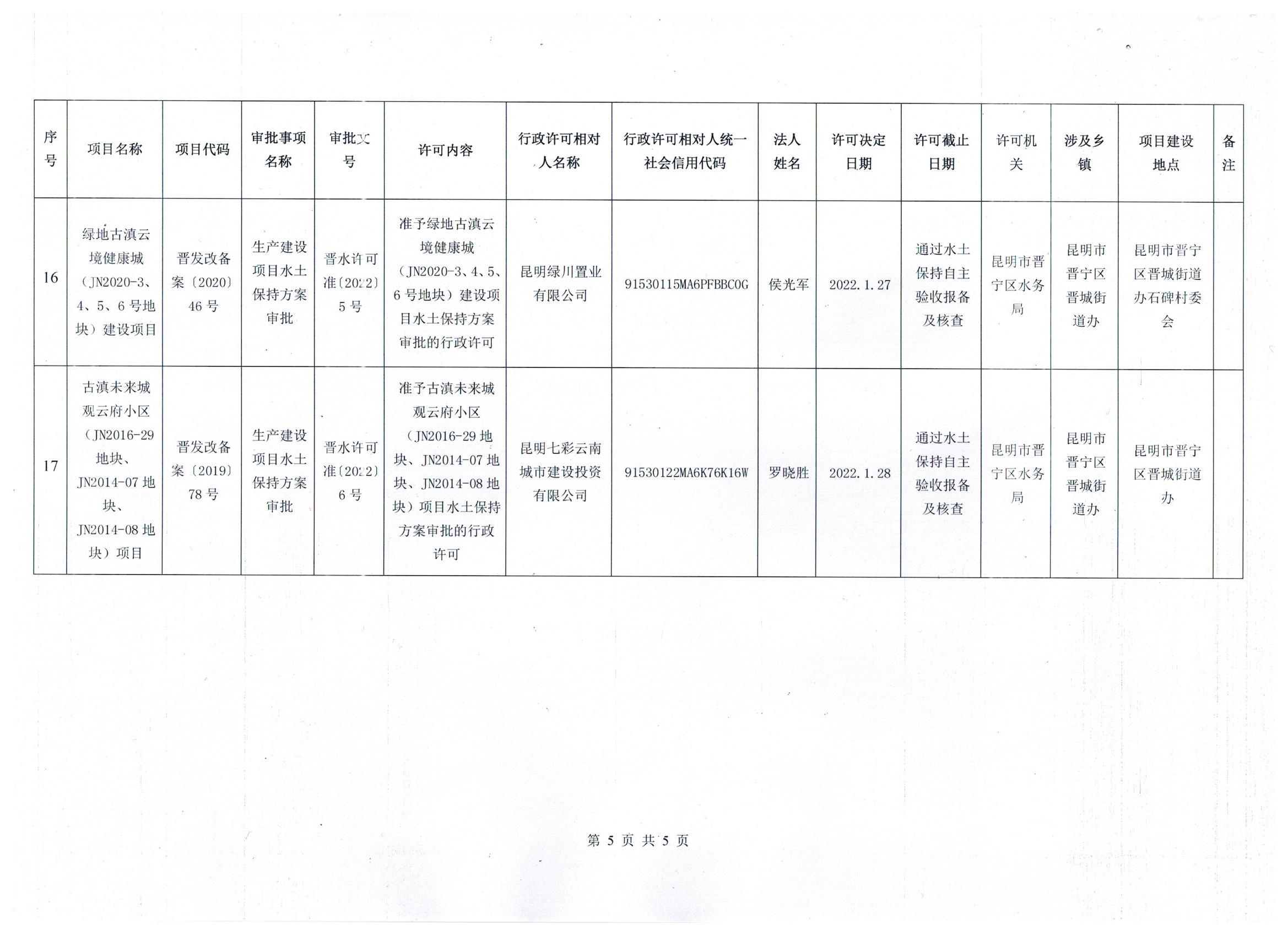 昆明市晋宁区水务局2022年1月份行政审批结果公示.5