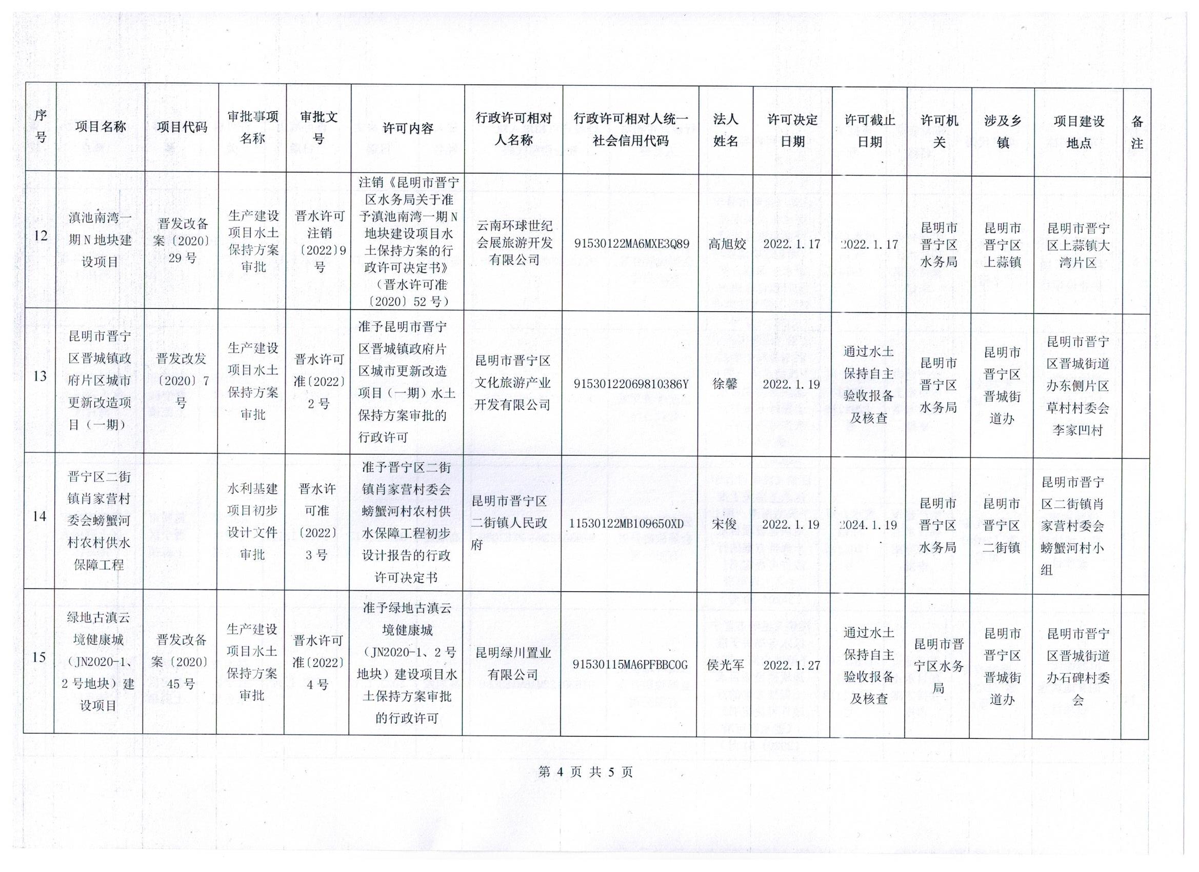 昆明市晋宁区水务局2022年1月份行政审批结果公示.4