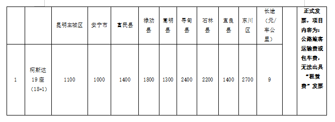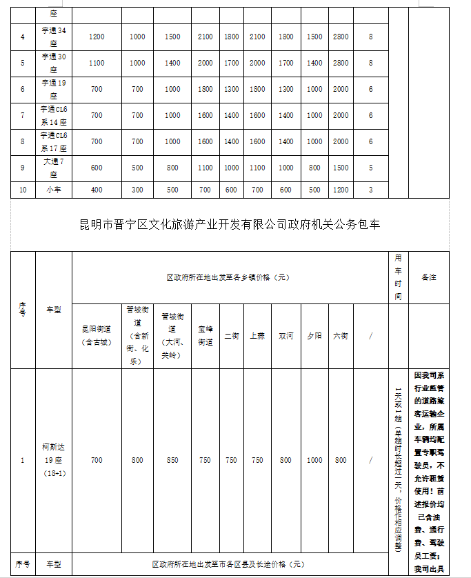 昆明市晋宁区文化旅游产业开发有限公司 | 普通燃油车 | 五座轿车(1.5L及以下) | / | / | / | / | / | 该价格为最高限价,具体价格由用车单位与服务商根据车型实际情况以不超过最高限价进行协商。 |
