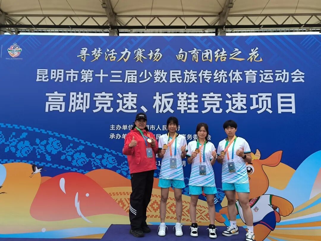 10月20日,在昆明市第十三届少数民族传统体育运动会上,晋宁区代表团迎来历史性突破——在女子60米板鞋竞速比赛中,杨圆媛、闵艳玲、廖一戎组合不畏强手,勇夺桂冠。