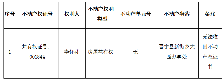 因我机构无法收回下列不动产权证书,根据《不动产登记暂行条例实施细则》第二十三条的规定,现公告作废。