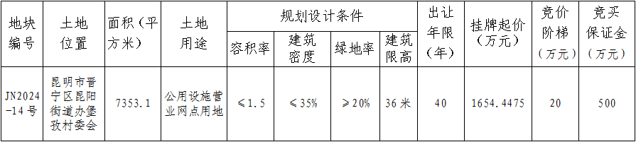 昆明市晋宁区国有建设用地使用权网上挂牌交易公告2024-014号