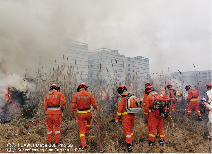 上午10时,演练正式开始。随着指令发出,区森林消防大队、昆阳街道专业扑火队快速集结到火情发生地并迅速列队以战斗队形稳步向火场推进。队员们利用风力灭火机、二号工具、高压水泵开展灭火行动。经过近2小时的扑打,明火全线扑灭,转入余火清理阶段,村组义务扑火队员携带水桶、二号工具等值守火场。