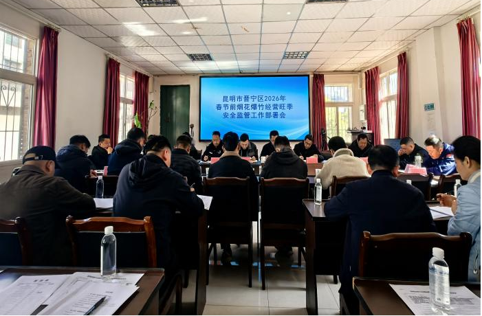 为落实省、市关于2026年春节前后烟花爆竹生产经营旺季安全生产工作要求,防范遏制安全生产事故,保障群众生命财产安全,2025年12月30日,晋宁区安委办召开专题部署会,通过“工作部署+安全教育”双阶段模式,筑牢烟花爆竹安全防线。