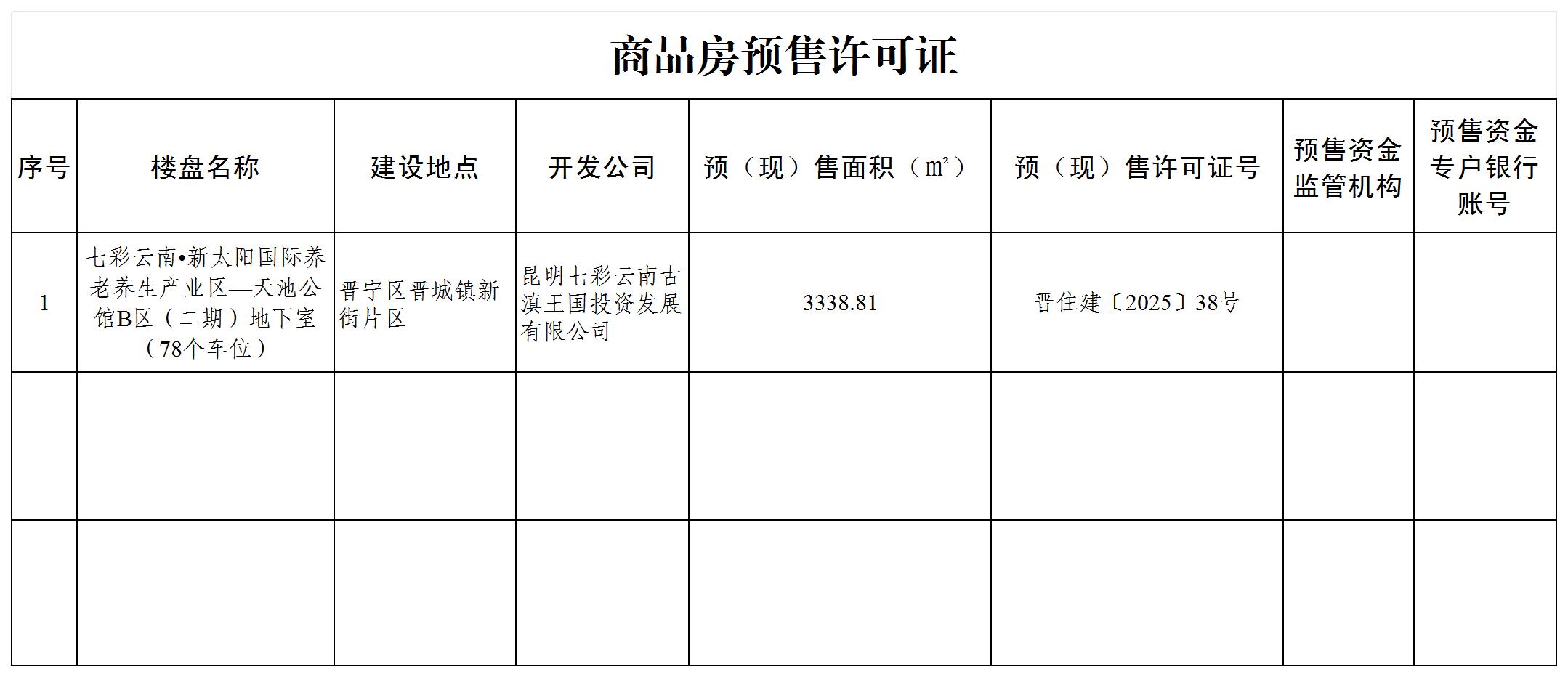 昆明市晋宁区住房和城乡建设局2025年11月-12月份行政许可公开明细 _预售许可