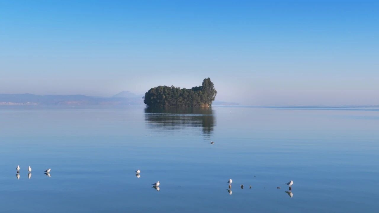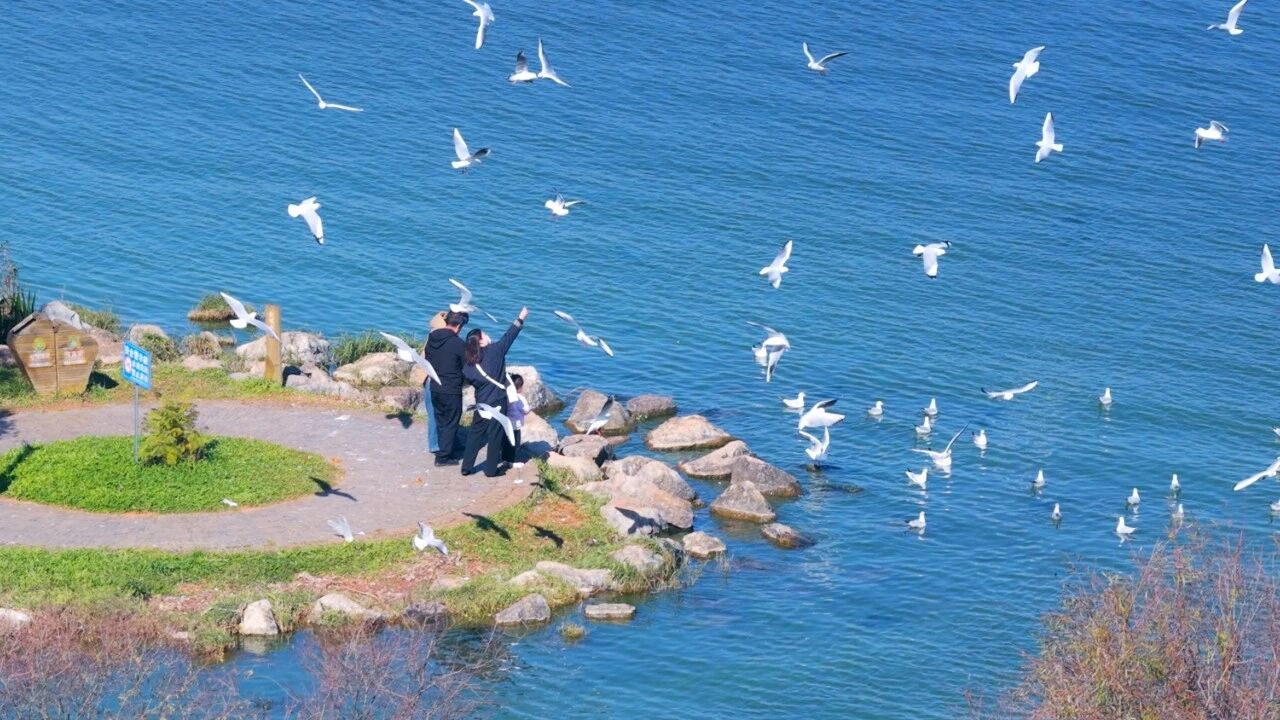 滇池南岸:碧水映蓝天 鸥飞入画来