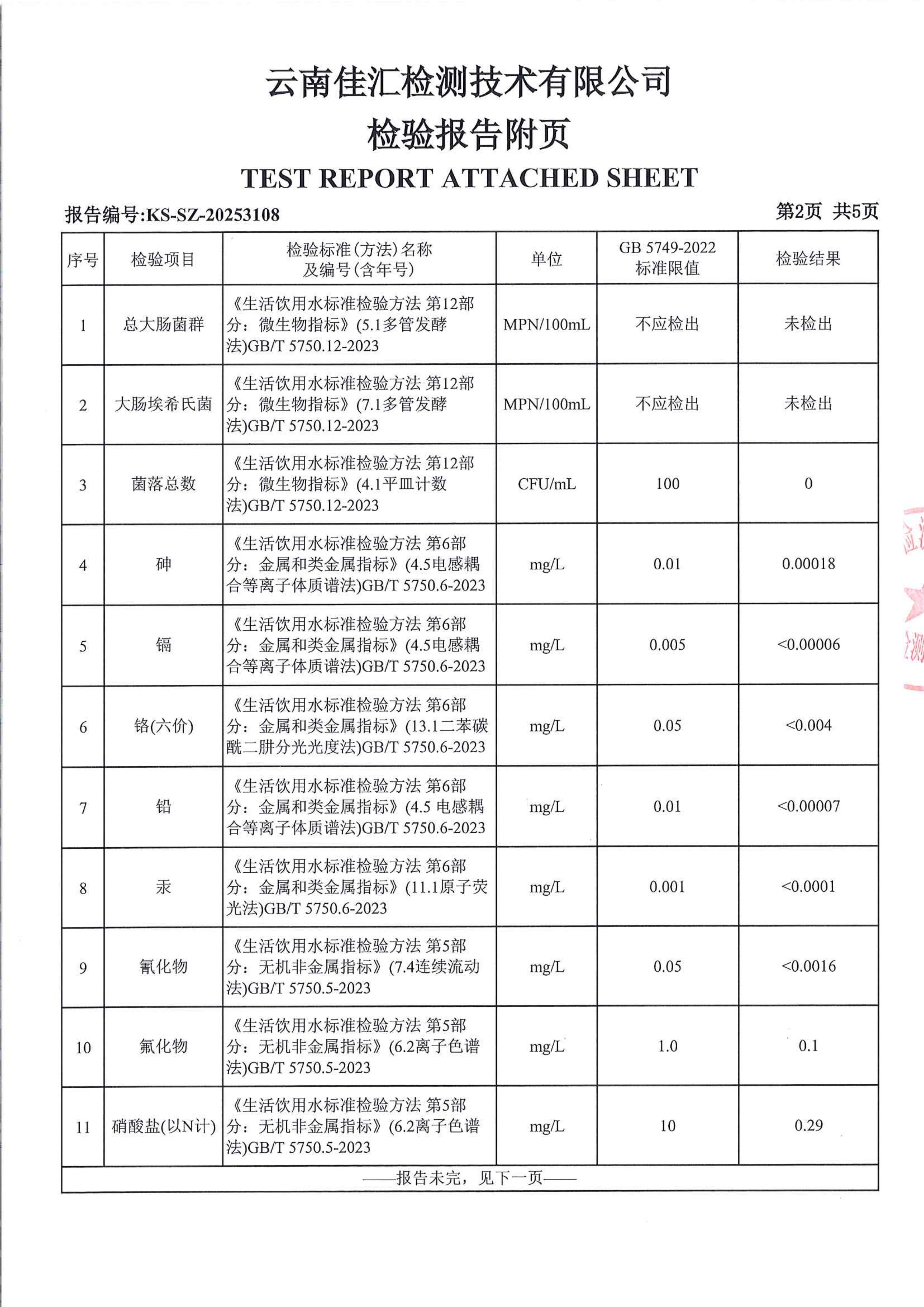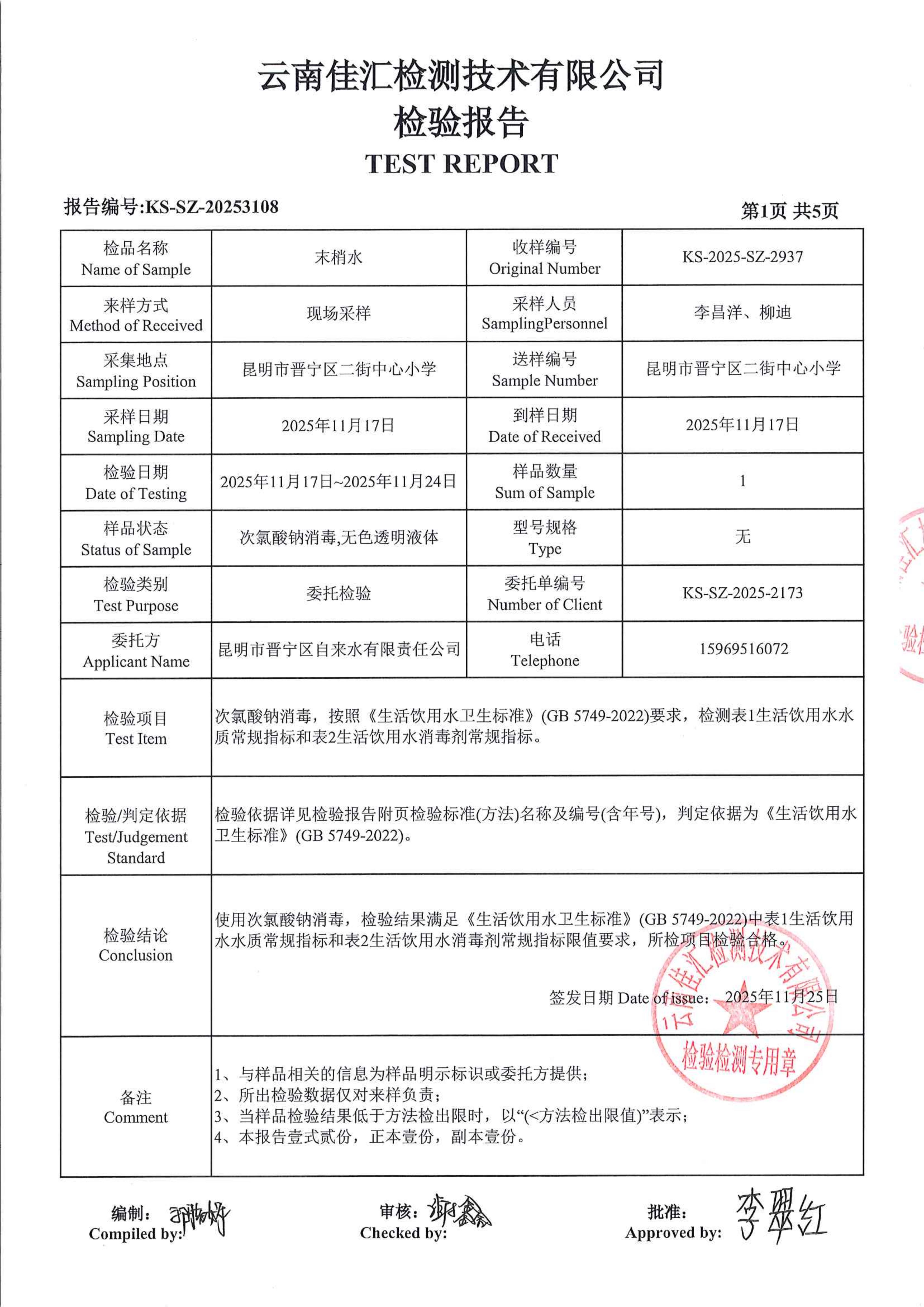 昆明市晋宁区二街中心小学水质公示(2025年11月)