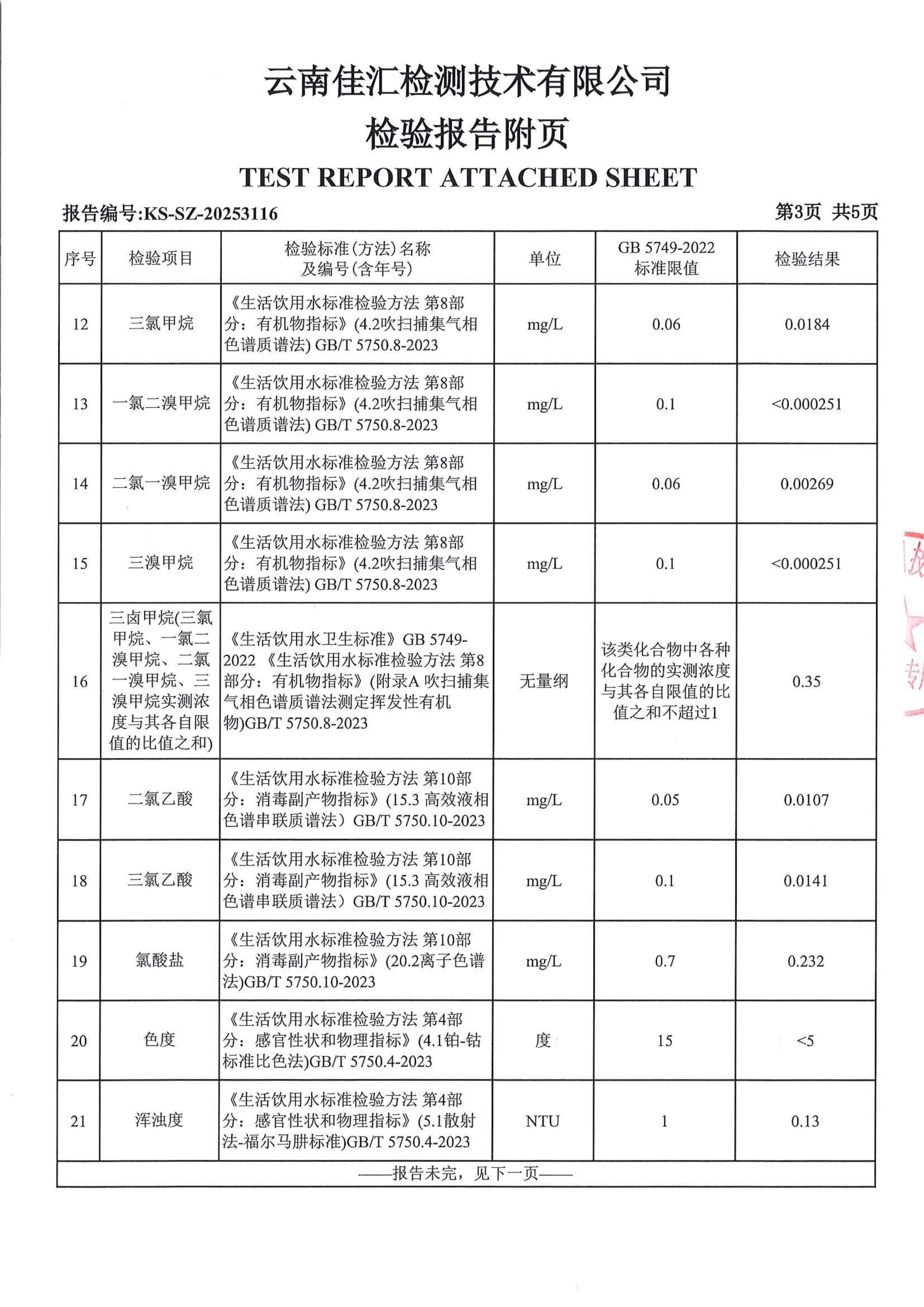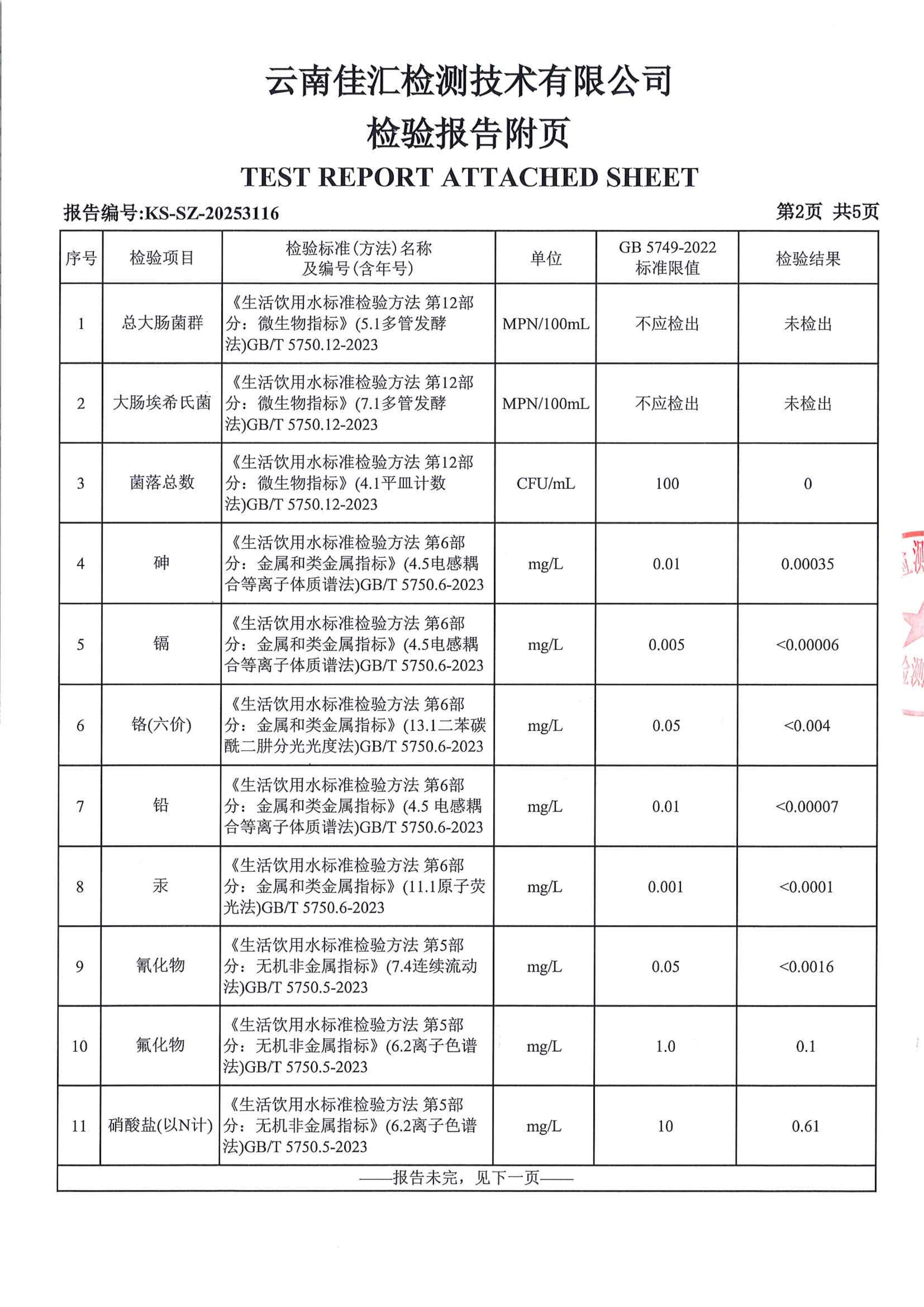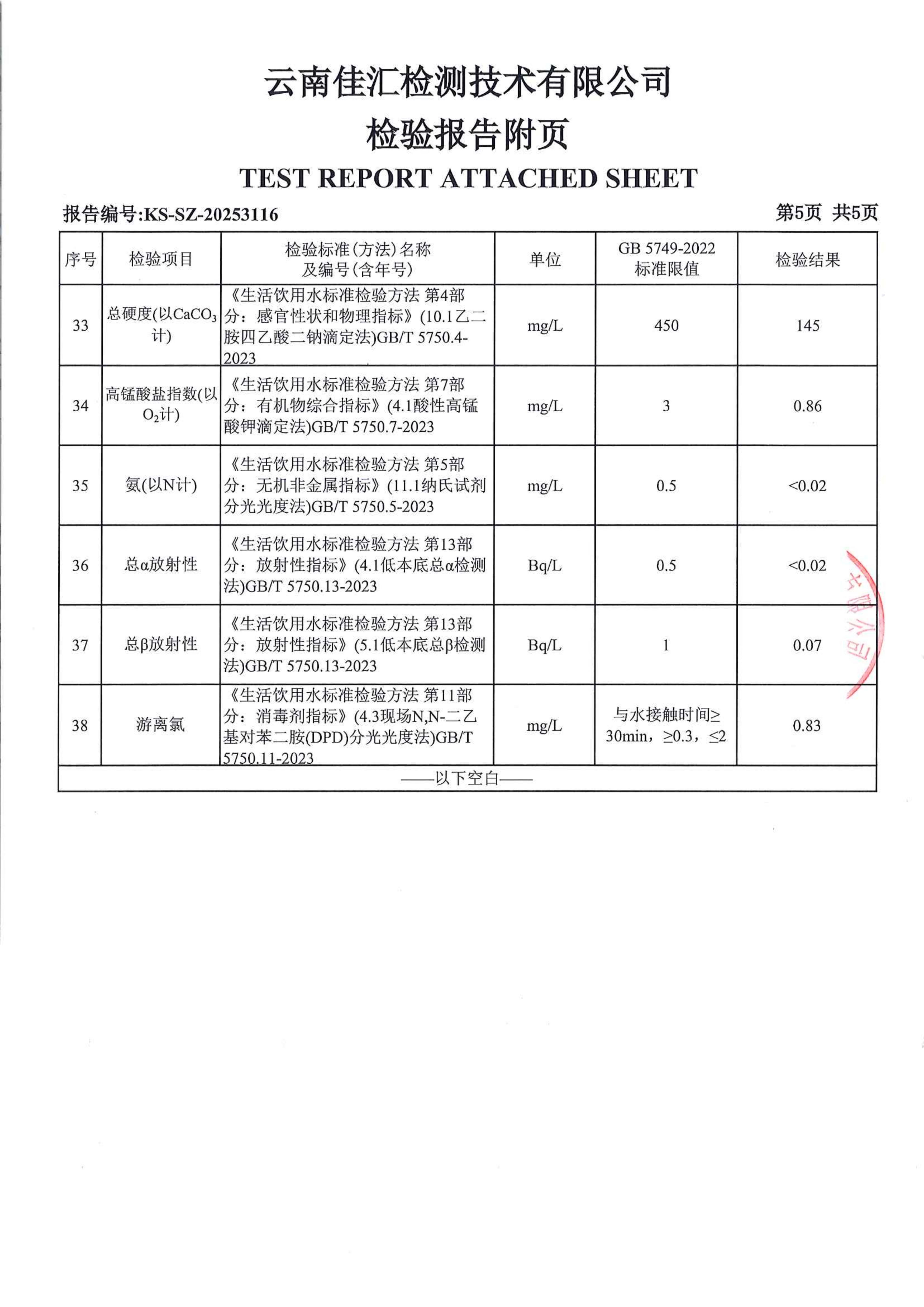 昆明市晋宁区自来水有限责任公司宝峰水厂水质公示(2025年11月)