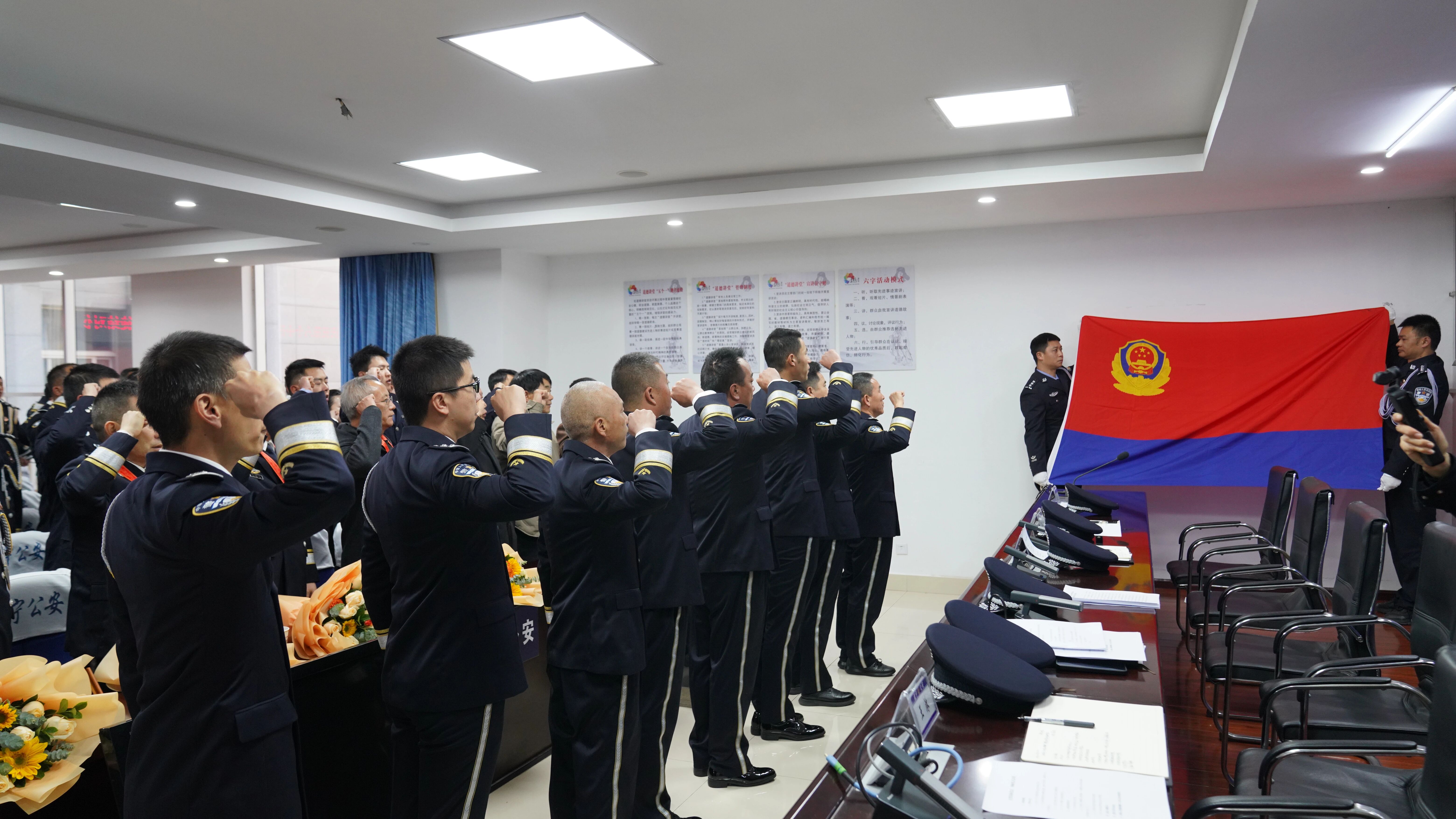 在庄重的氛围中,全体民辅警面向警旗,举起右拳,由分局党委书记、局长夏跃江带领重温入警誓词。“我志愿成为中华人民共和国人民警察……”铿锵有力的誓言回荡在会场上空,字字千钧,既是对初心使命的重温回望,更是对责任担当的庄严承诺,进一步坚定了全体民辅警忠诚于党、忠诚于人民、忠诚于法律的信念。誓词完毕,全体人员共同奏唱《中国人民警察警歌》,歌声嘹亮、气势如虹,展现了公安队伍昂扬向上、奋勇前行的精神风貌。