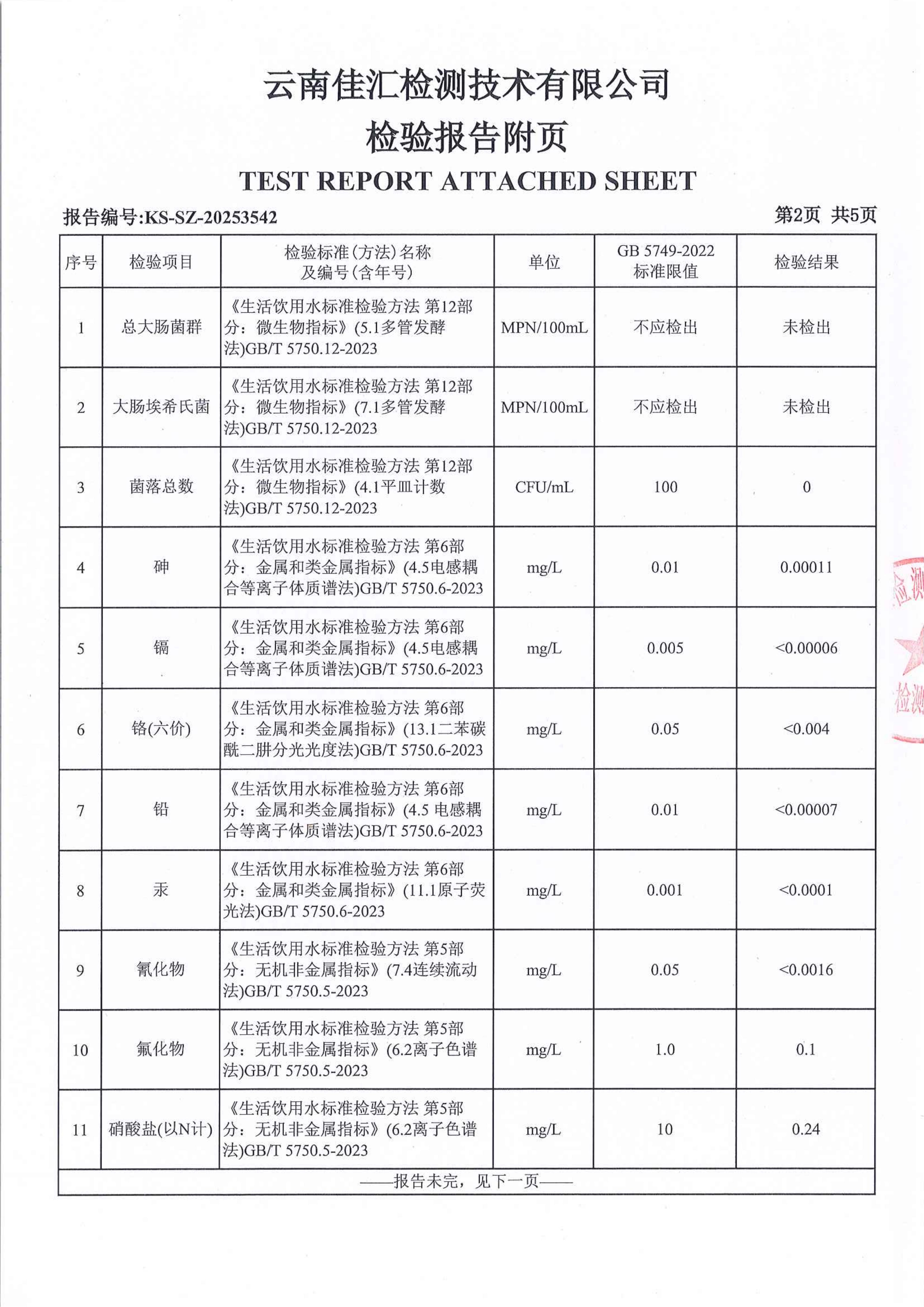 昆明市晋宁区二街镇人民政府水质公示(2025年12月)
