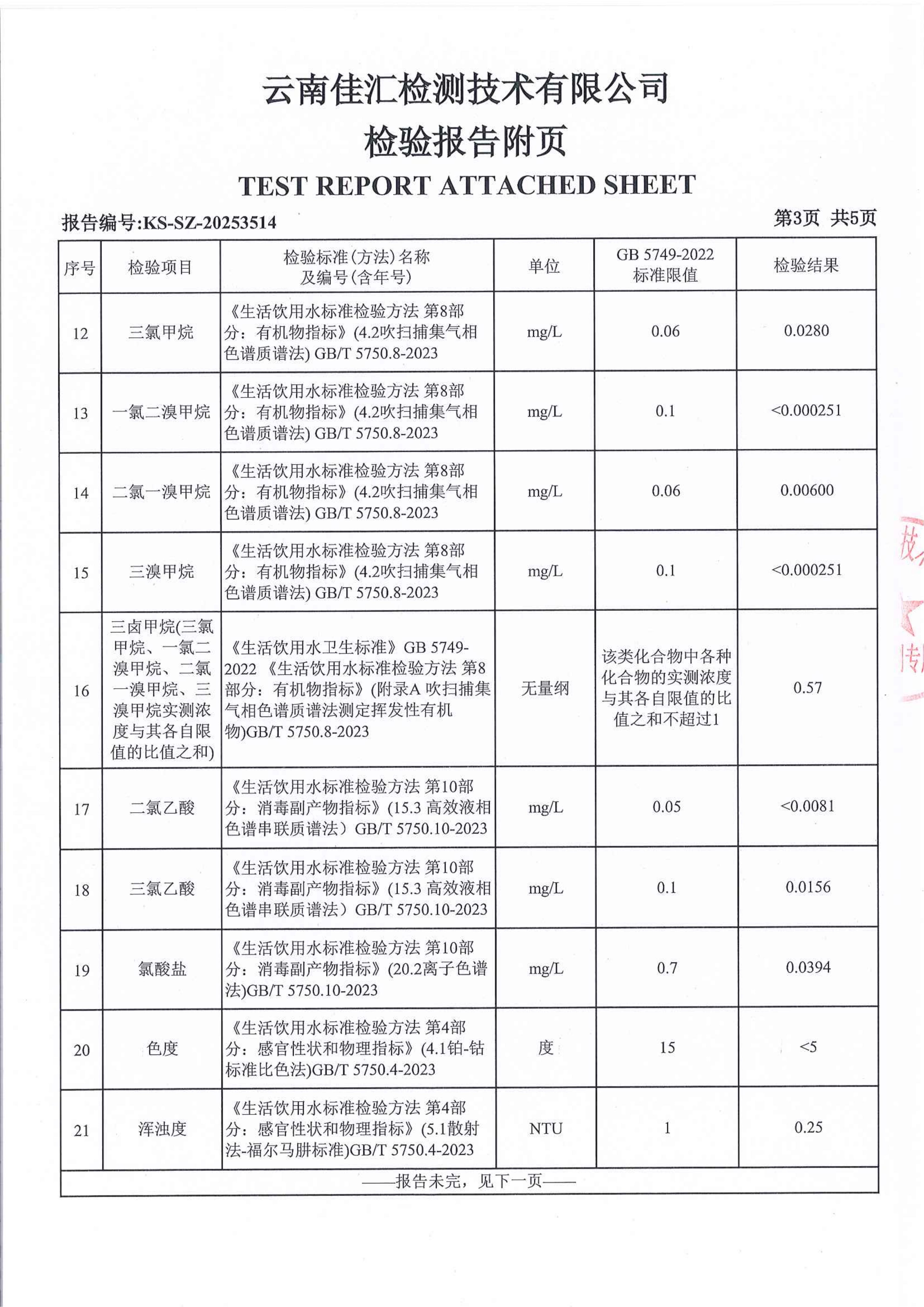 昆明市晋宁区晋城第一小学水质公示(2025年12月)