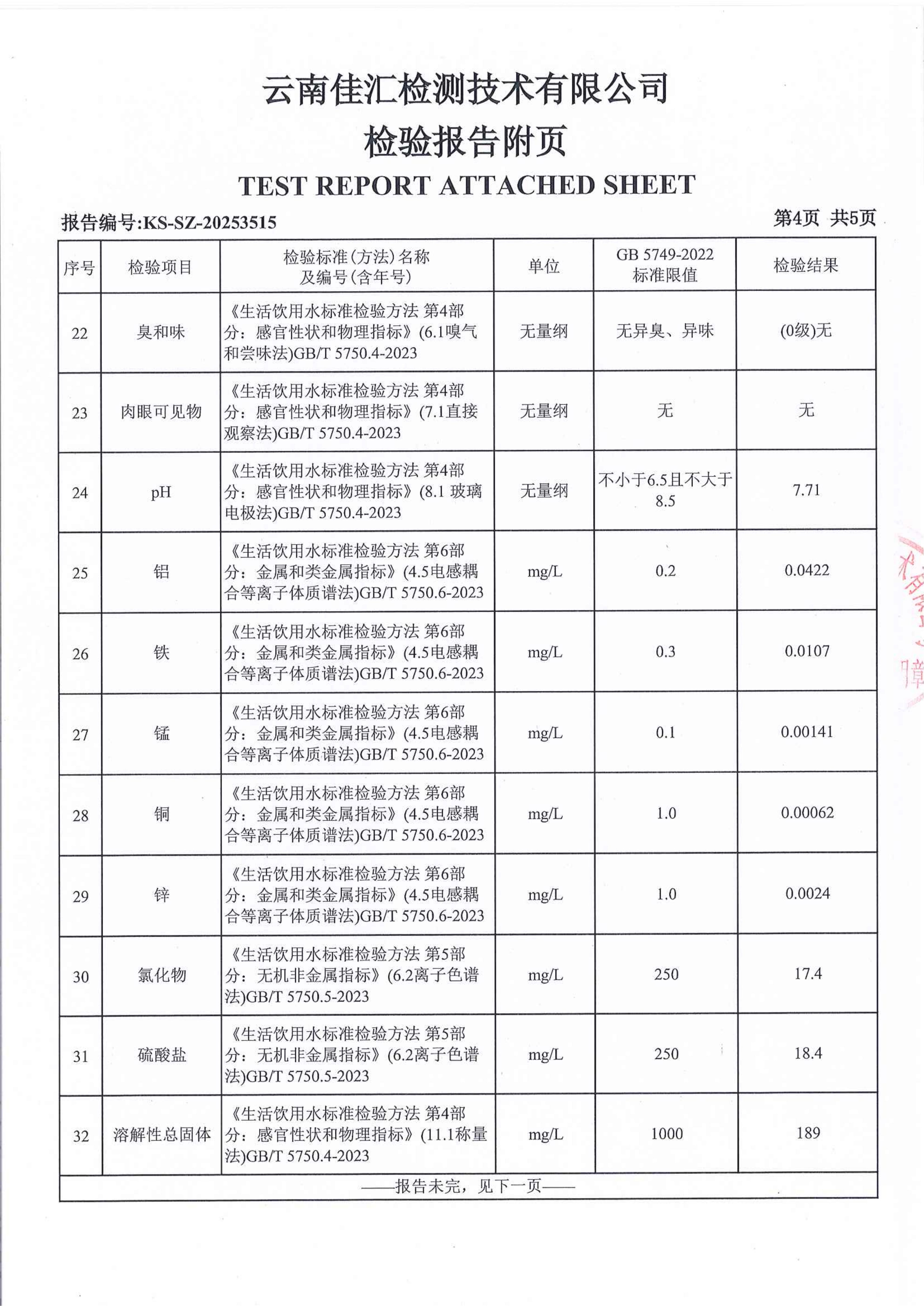 昆明市晋宁区石将军净水厂出厂水水质公示(2025年12月)