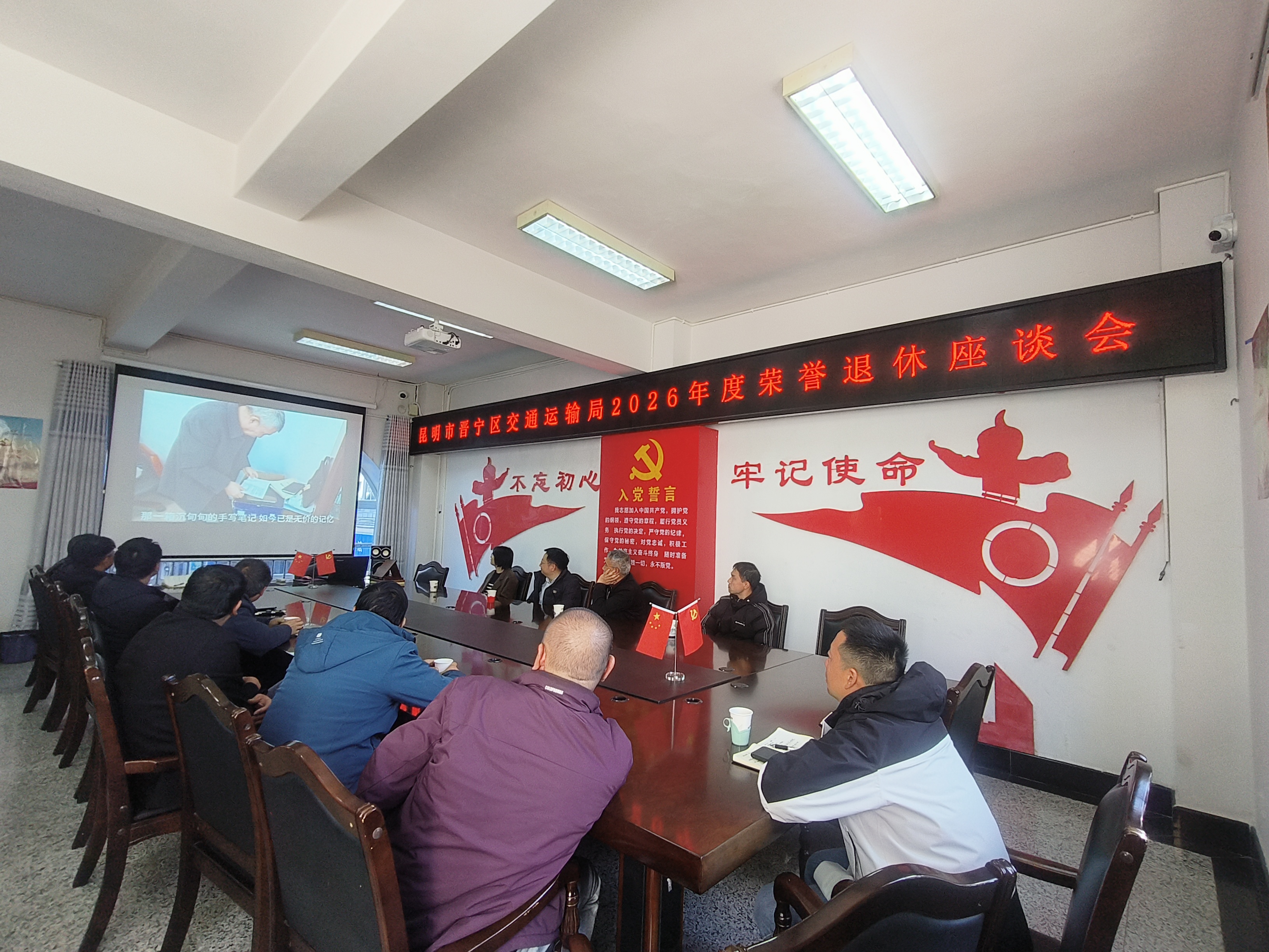 座谈开始,与会人员共同观看了退休干部李俊同志荣休纪念短片《岁月如路,匠心致远》。短片生动回顾了李俊同志数十年来的工作历程,其本人深情分享了履职感悟,言辞恳切,既体现了交通人扎根岗位、艰苦奋斗的执着精神,也饱含了对晋宁区交通运输事业未来发展的殷切期望。