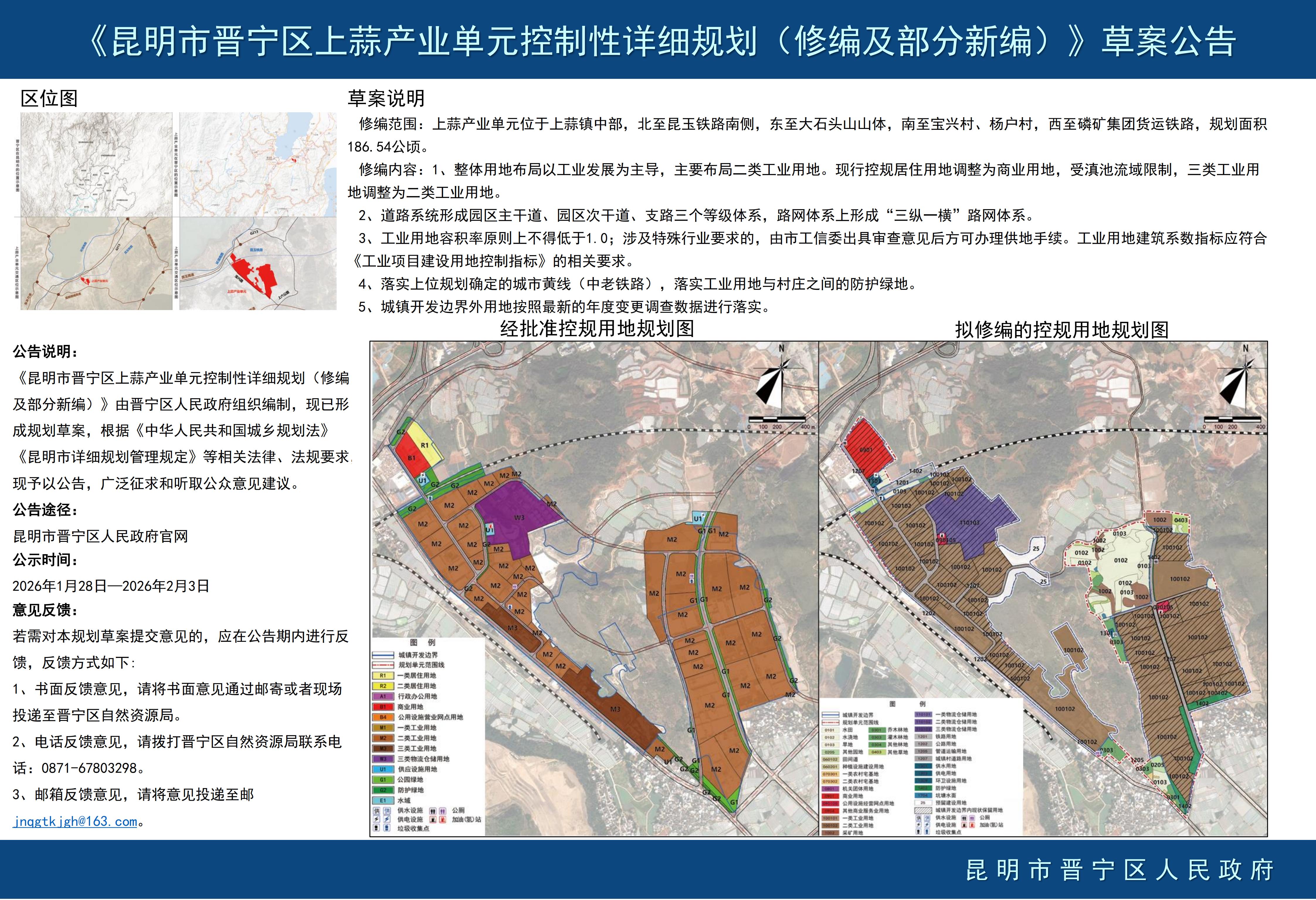 《昆明市晋宁区上蒜产业单元控制性详细规划(修编及部分新编)》草案公告
