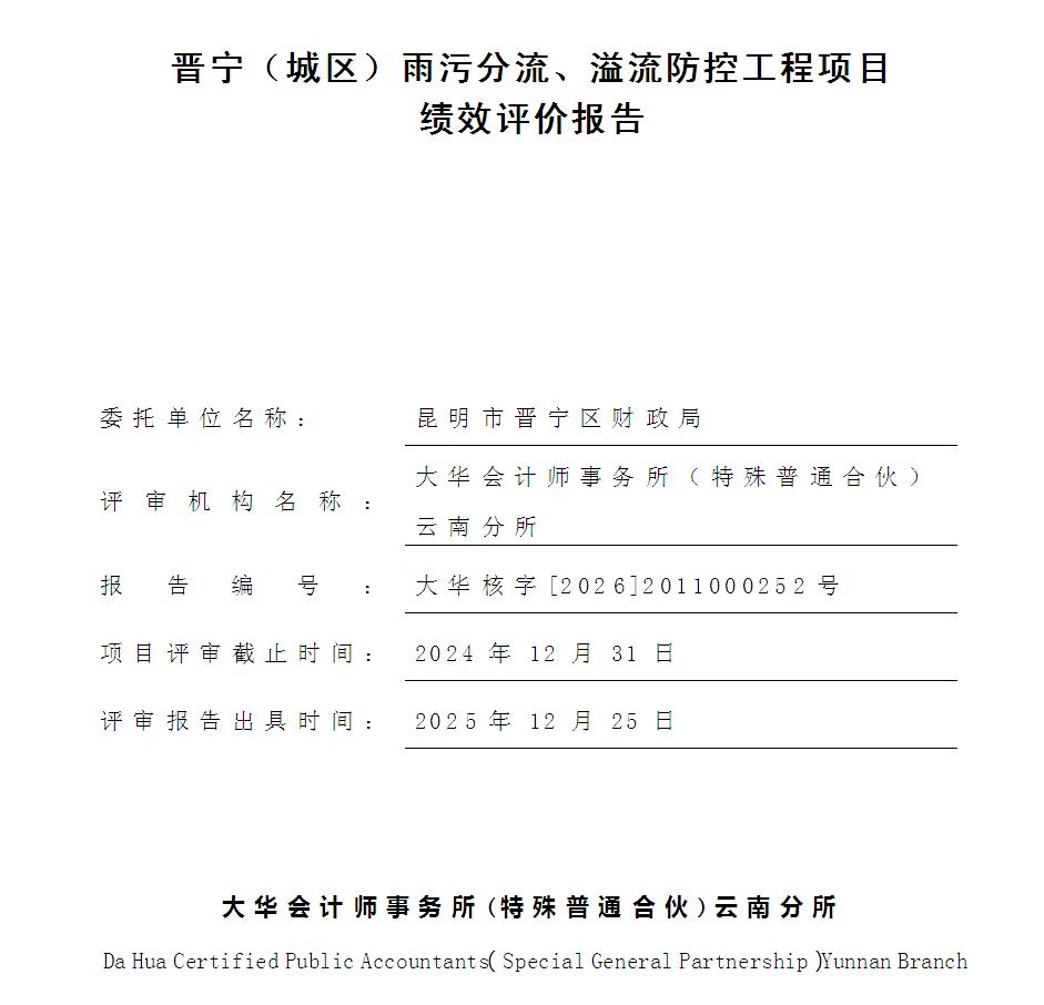 晋宁(城区)雨污分流、溢流防控项目绩效评价报告