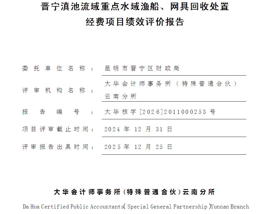 晋宁滇池流域重点水域渔船、网具回收处置经费绩效评价报告