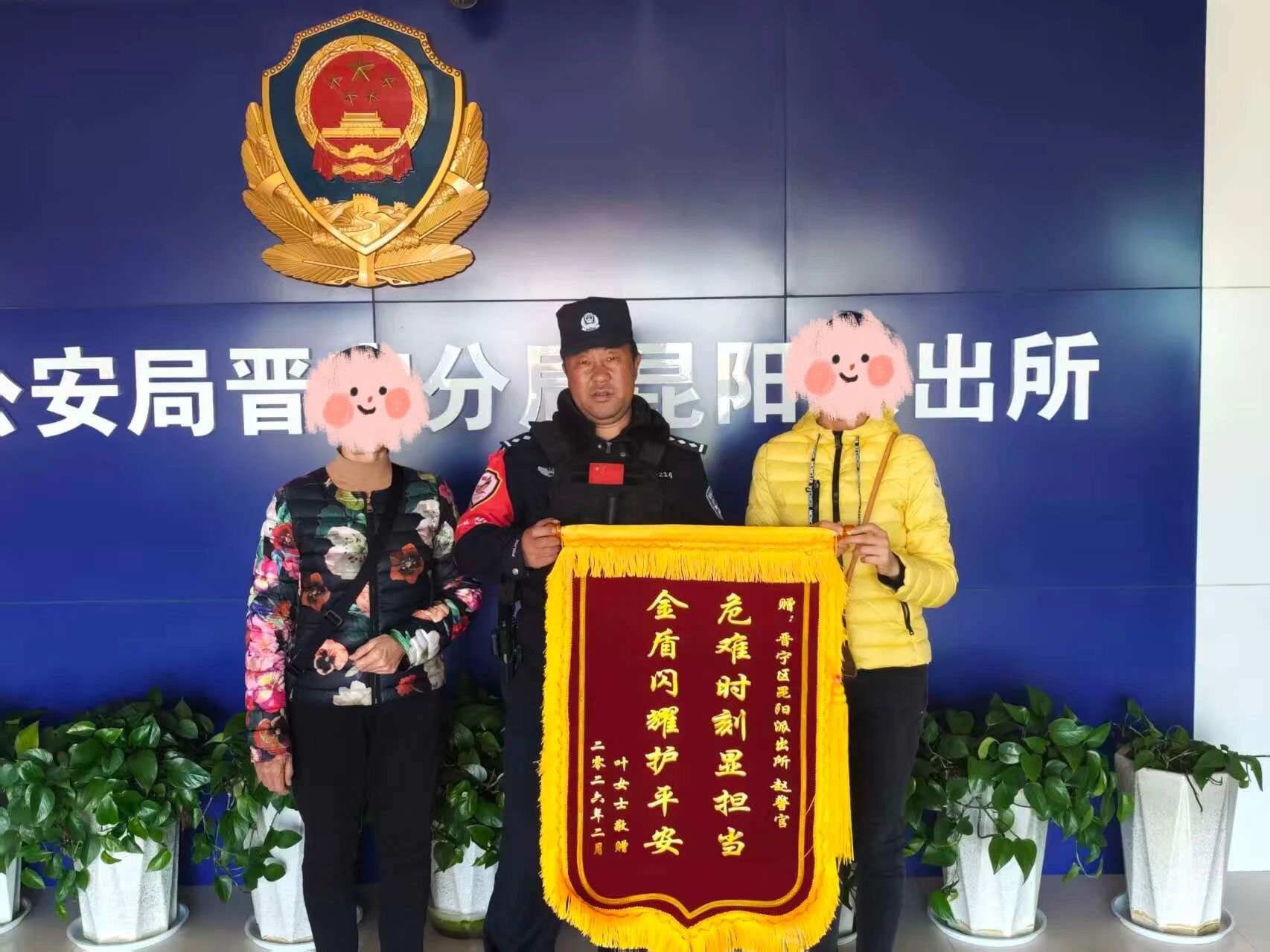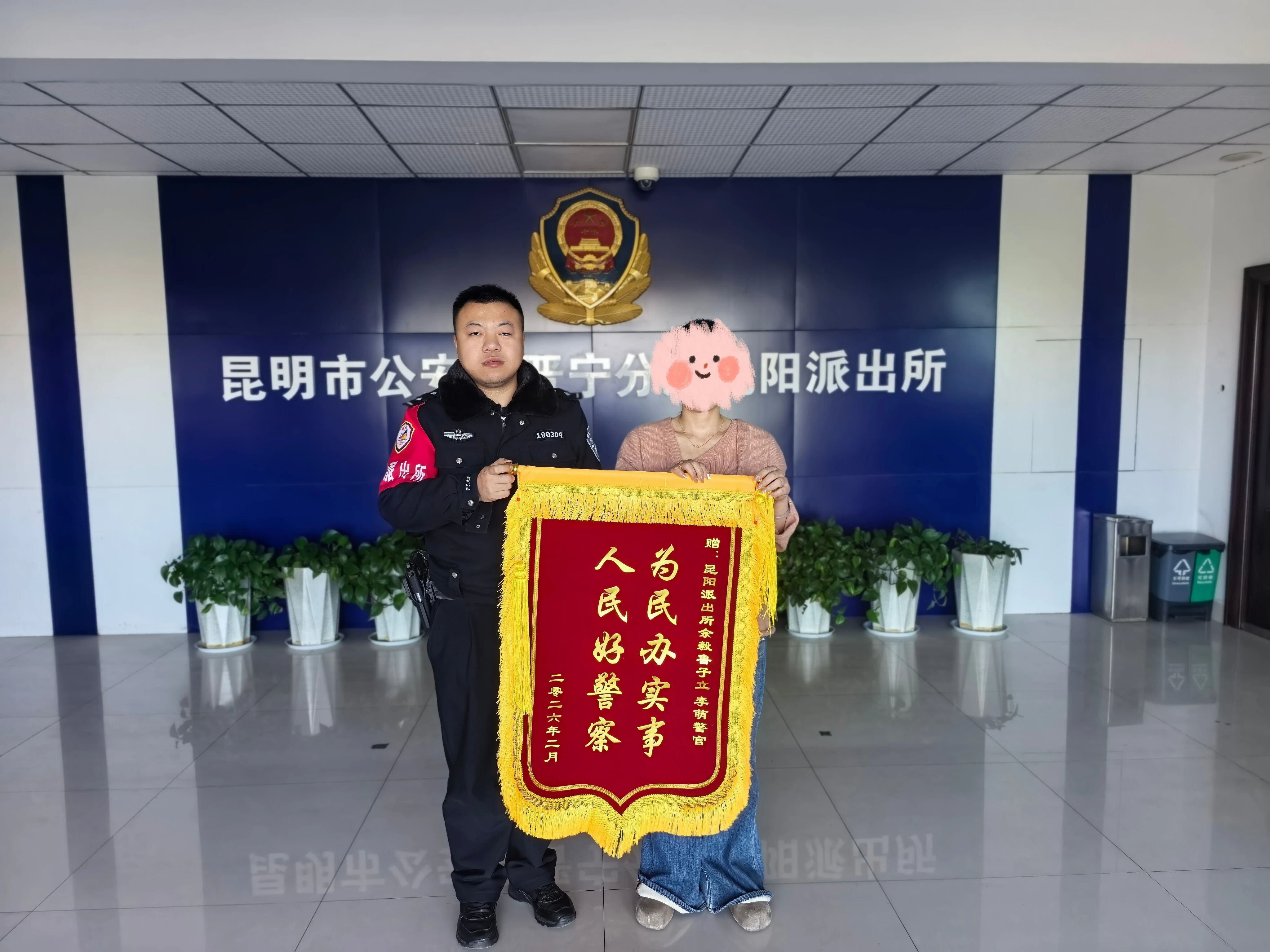 2026年2月20日,居民代表将印有 “危难时刻显担当 金盾闪耀护平安” 的锦旗送至昆阳派出所,致谢民警快速处置高空玻璃爆裂险情。此前,昆阳某小区高层窗户玻璃突发爆裂,碎片散落路面,悬窗玻璃随时坠落。民警火速到场,疏散群众、设置警戒,并联动消防部门排险清障。近一小时紧张作业,隐患彻底消除,未造成人员受伤,获群众高度赞誉。