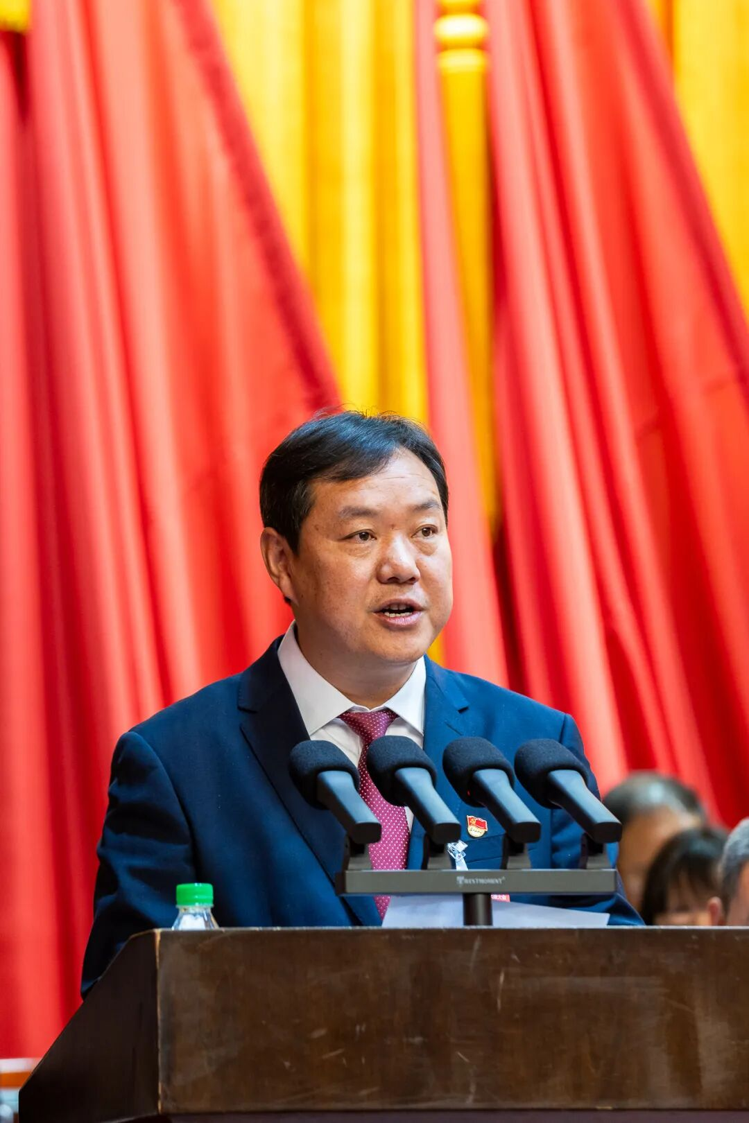 代理区长马龙在会上代表区人民政府作政府工作报告。