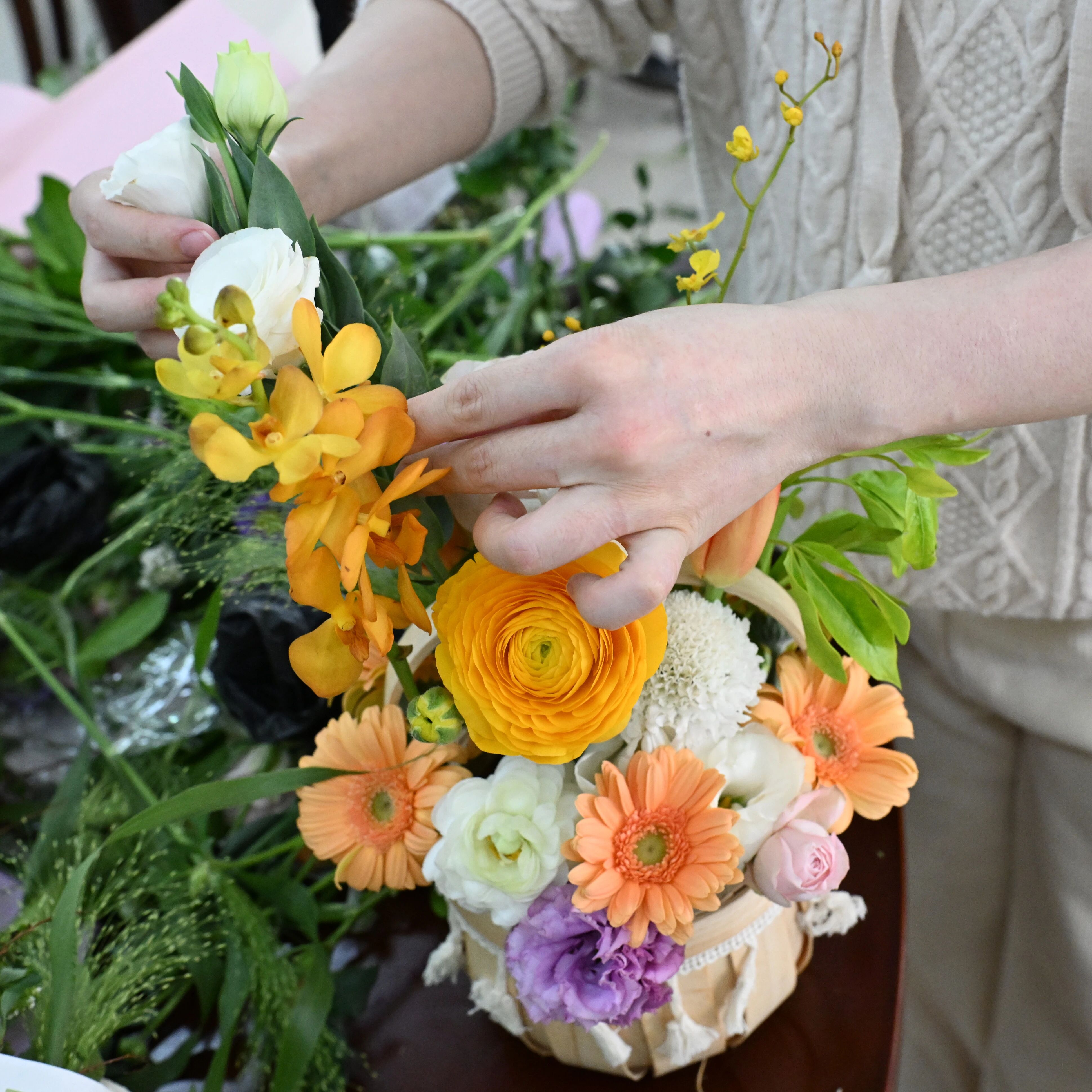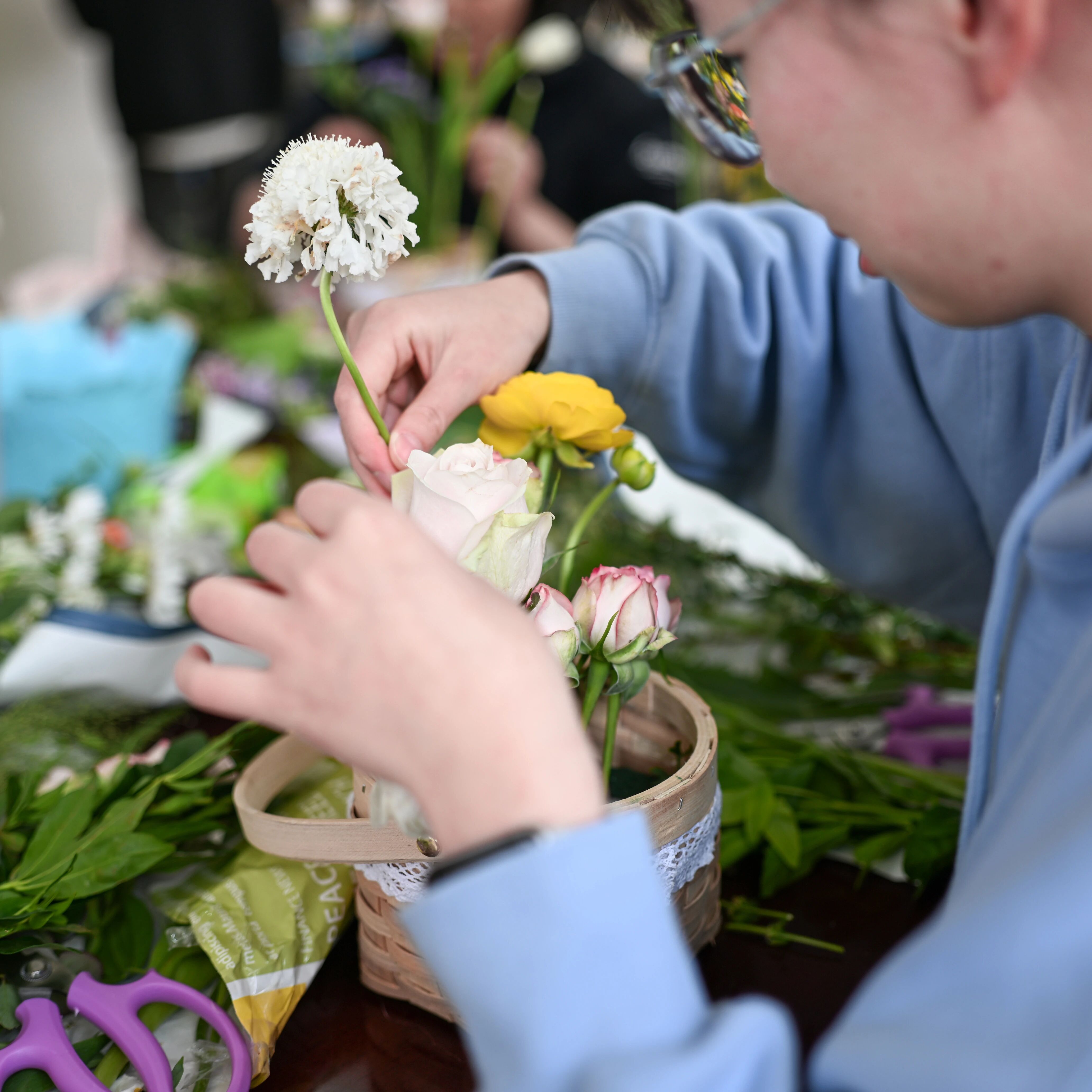 一朵朵鲜花在指尖绽放,一个个独具匠心的花艺作品新鲜出炉。