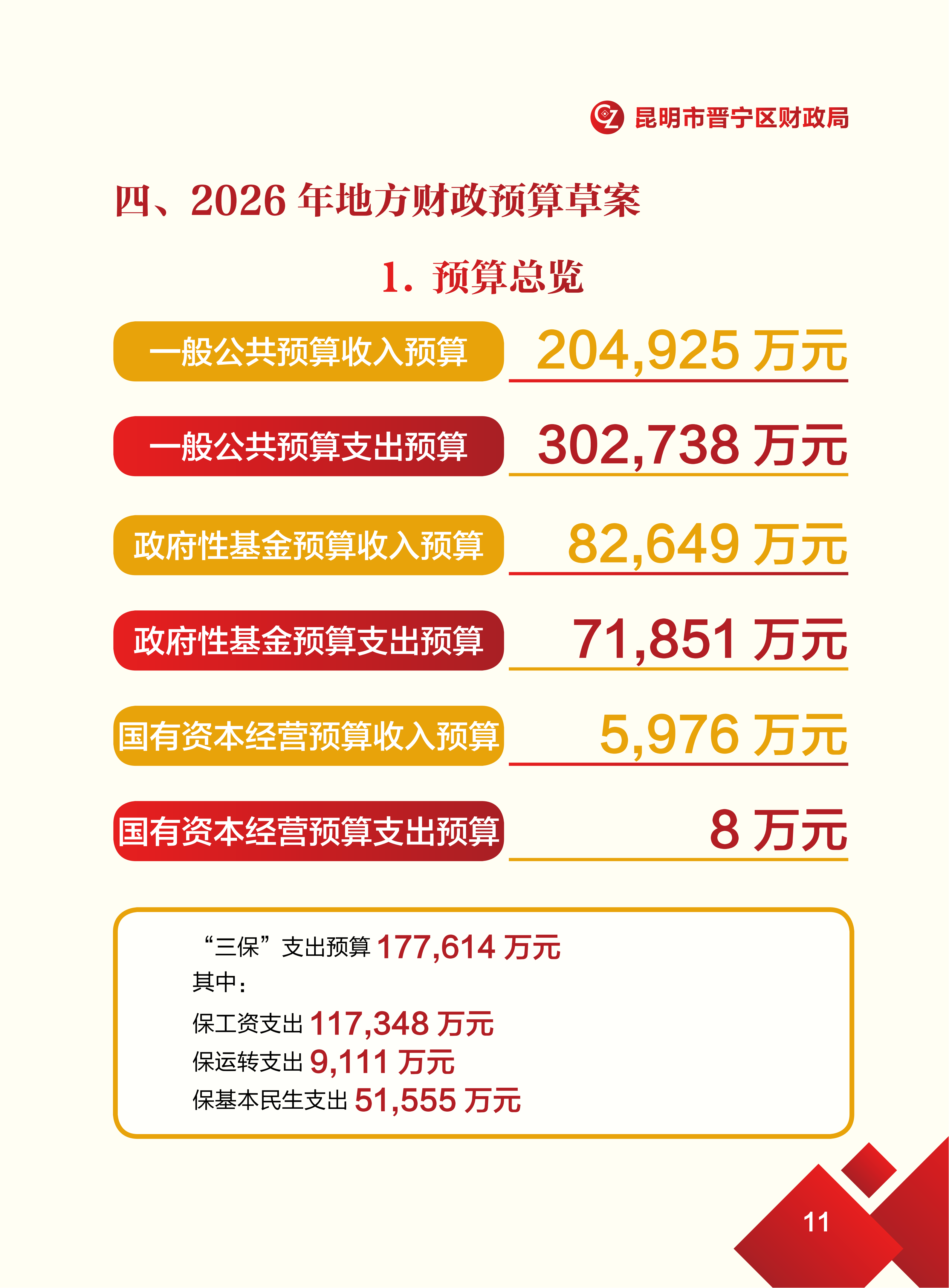 关于对《昆明市晋宁区2025年地方财政预算执行情况和2026年地方财政预算(草案)的报告》的解读