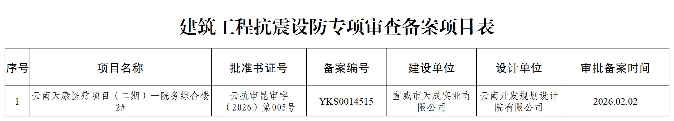 昆明市晋宁区住房和城乡建设局2026年2月行政许可公开明细_抗震
