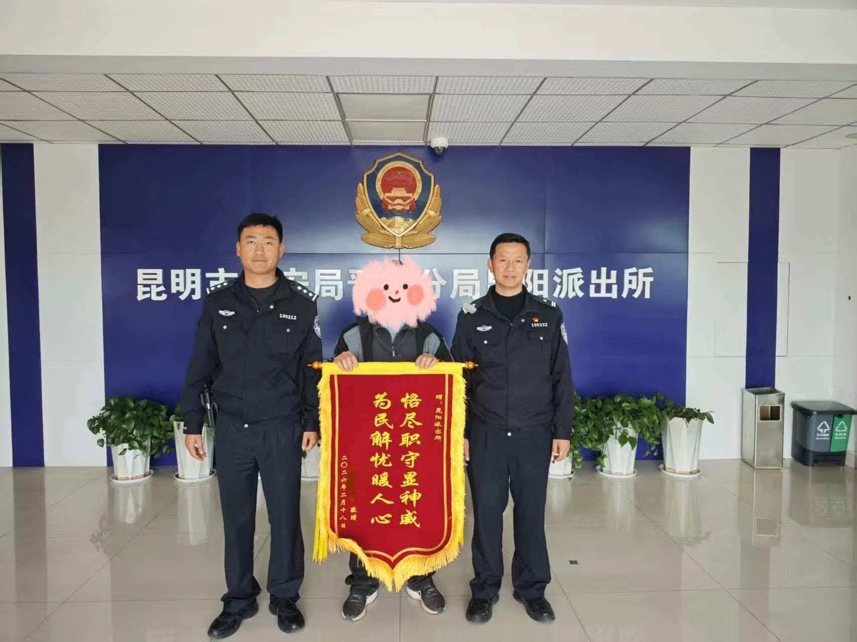 看到失而复得的爱犬,群众激动不已,对民辅警认真负责、热心为民的工作作风连连称赞。为表达诚挚谢意,特意送上锦旗,以最朴素的方式,向尽心尽责的民辅警致以最真挚的感谢。一面锦旗,一份认可。昆阳派出所始终践行 “人民公安为人民” 的初心使命,用点滴实事守护群众安心、温暖民心。