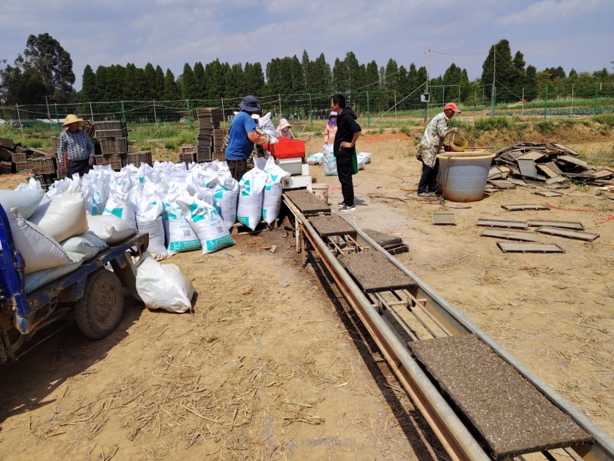 机械化育秧是机械化插秧的基础,是水稻全程机械化生产必要环节。晋宁康云农机农民专业合作社作为晋宁区实施水稻全程机械化生产主体,前期做足充分准备,平整出秧床60多亩,可育秧16万余盘,可以供5000多亩稻田用秧;自3月18日开始,现已完成育秧6万多盘,目前正加快推进育秧工作,努力完成今年育秧10万余盘的育秧任务。从“面朝黄土背朝天”的传统育秧到“流水线”上的自动化生产,晋宁区以机械化育秧开启了水稻生产全程机械化的新征程,为推动高原特色农业现代化发展注入了强劲动力。