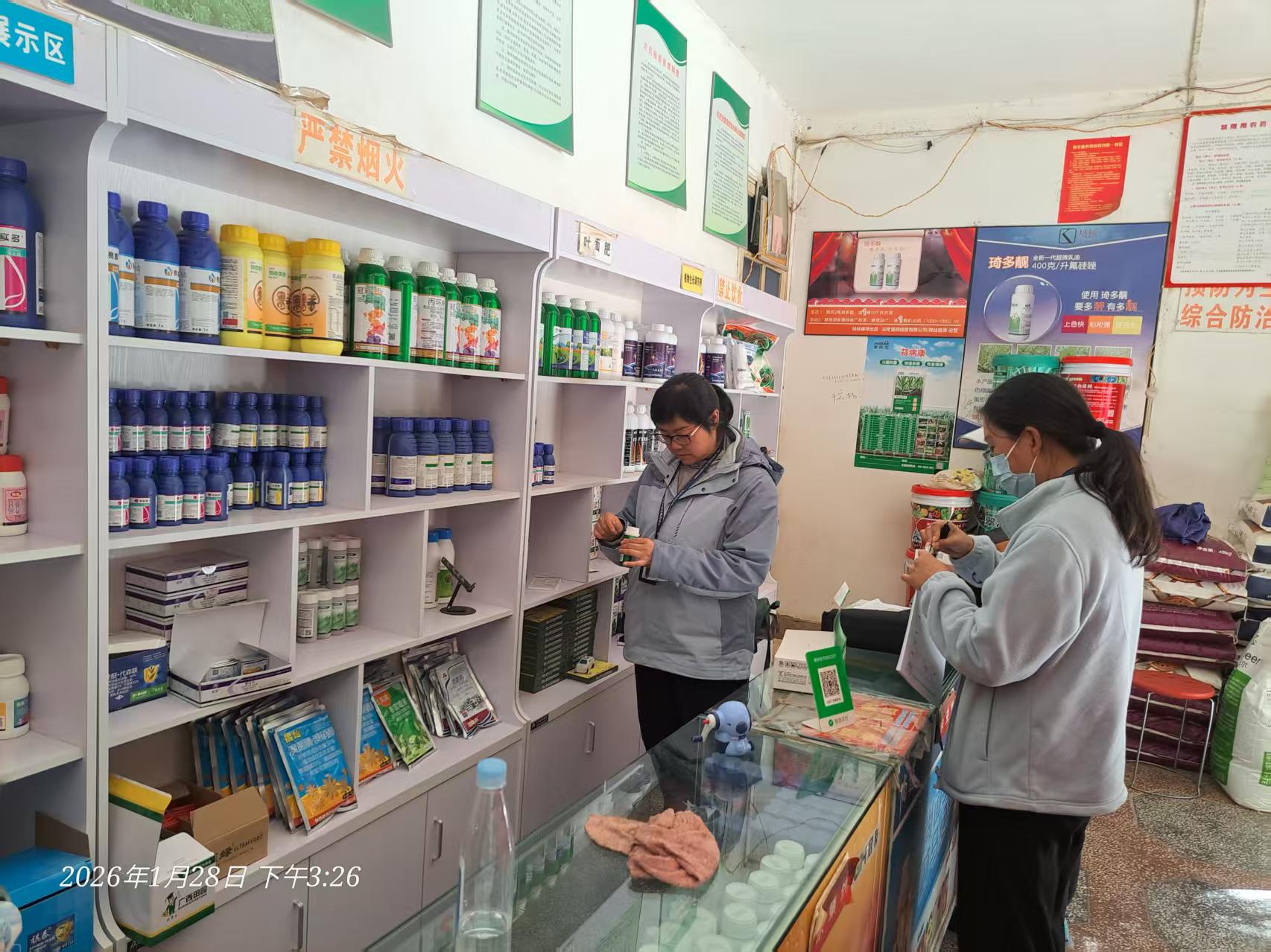 三是加强农资市场监管,保障投入品安全。 区农业农村局联合市场监管等部门,对种子、化肥、农药、农膜等农资经营门店开展拉网式检查,严厉查处销售假冒伪劣、过期失效农资产品和售卖禁限用农药行为。同时下村面对面开展培训,指导农户科学规范使用农药,严格执行安全间隔期,做好个人防护,防止人畜中毒和环境污染事件。